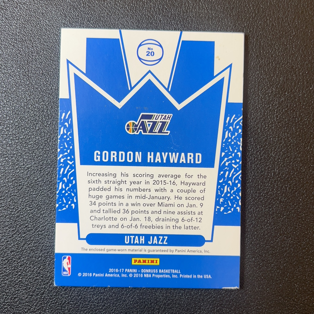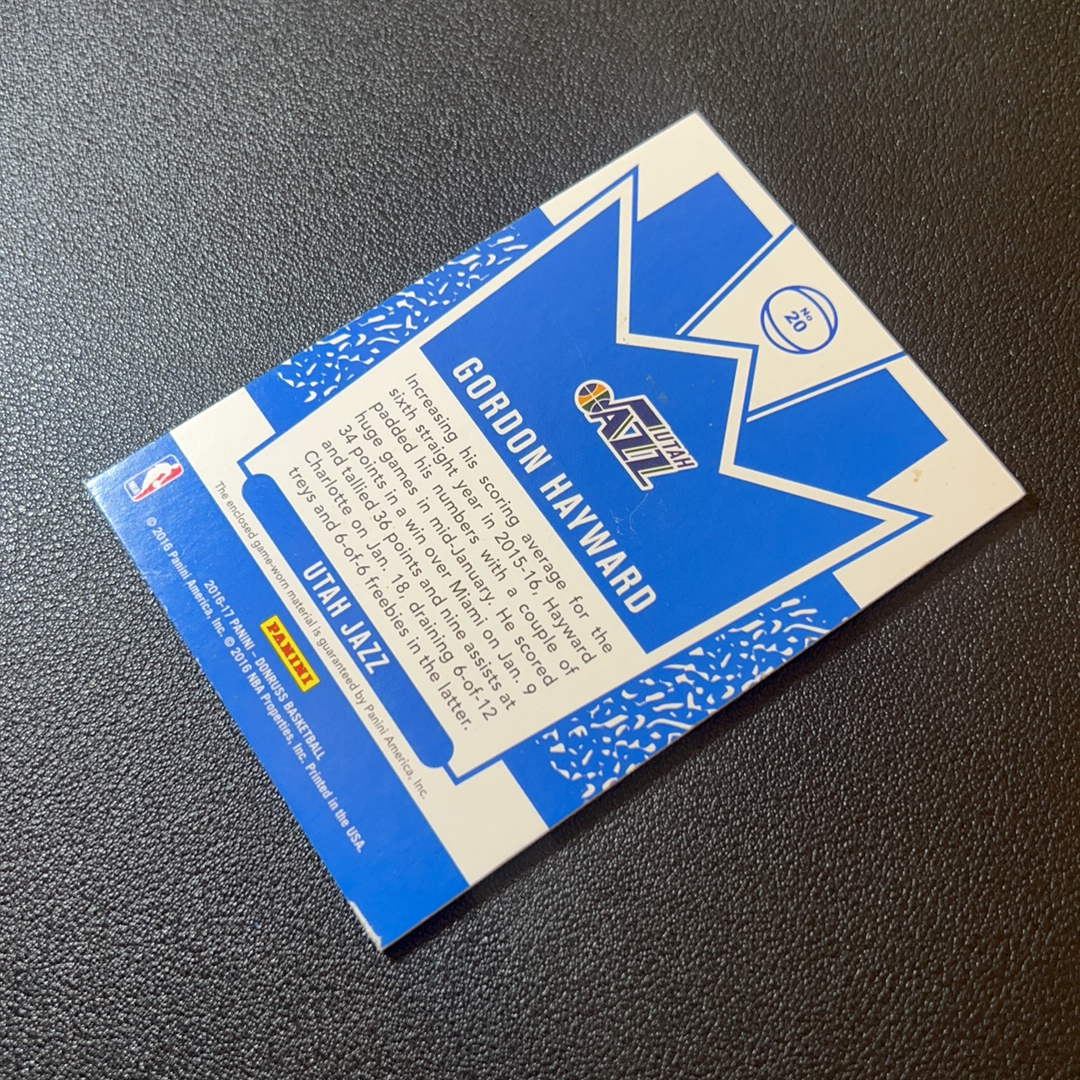 2016-17 Panini Donruss Gordon Hayward 杜蕾斯 爵士 戈登 海沃德 球衣 物料 老卡瑕疵看图 - S00468