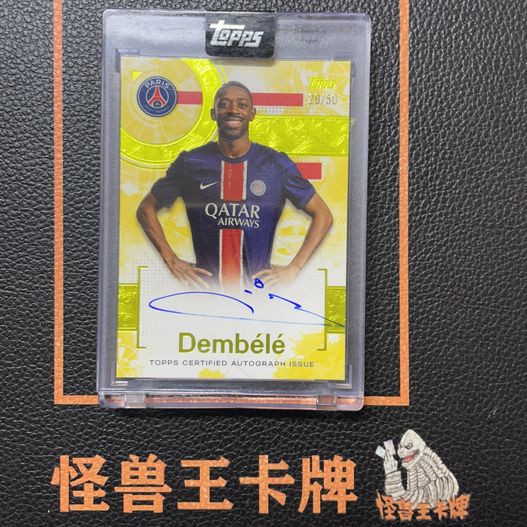 (怪兽拍卖) GSW-C88 2025 Topps Exhibition Ousmane Dembele 大巴黎展览高端队盒 登贝莱 金球先生 签字 卡签 50编 金折 原封砖