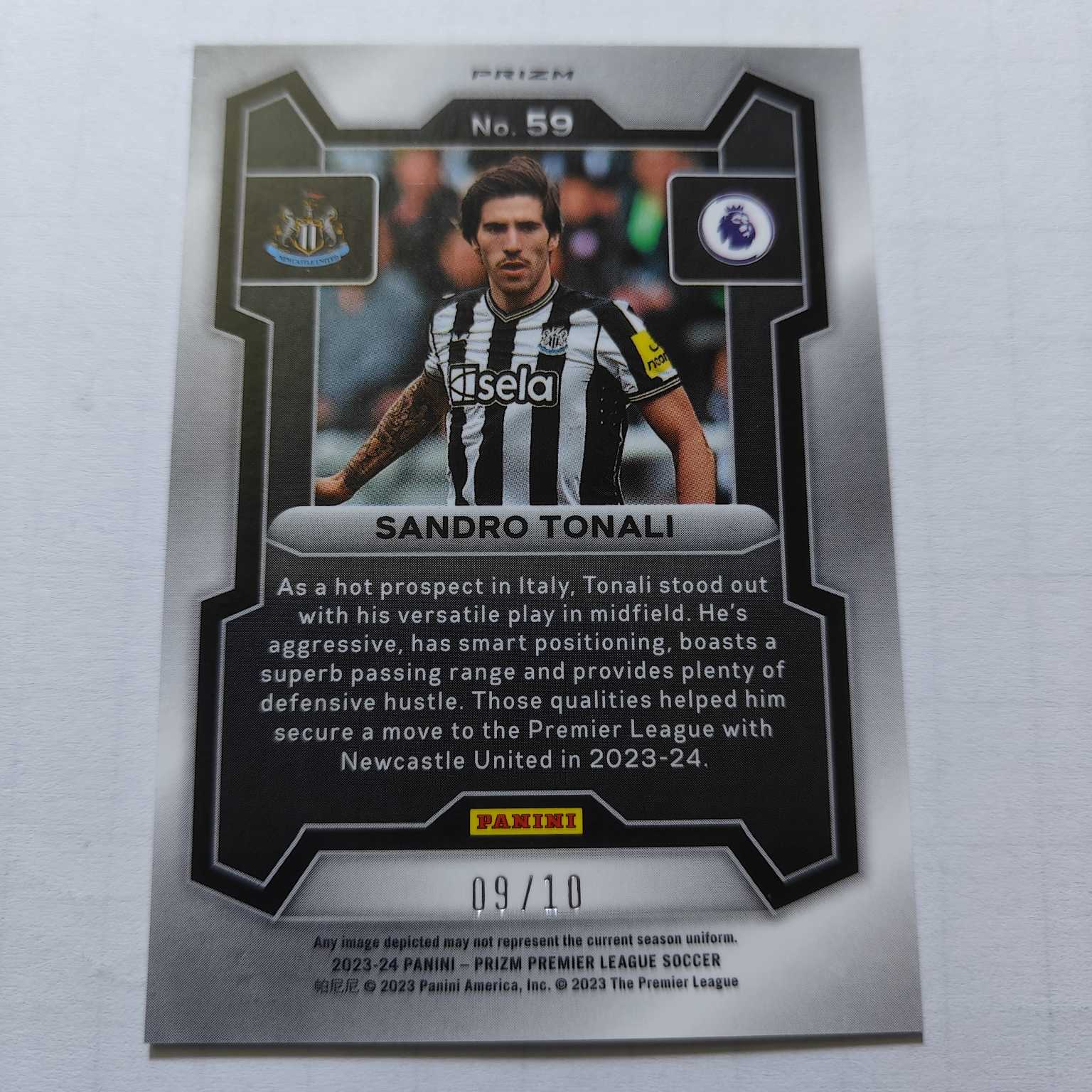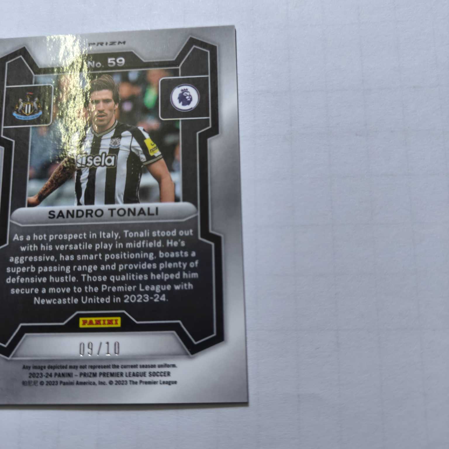 2023-24 Panini Prizm Sandro Tonali 英超 纽卡斯尔联 意大利球员 托纳利 金泡泡10编 通行品相有瑕疵