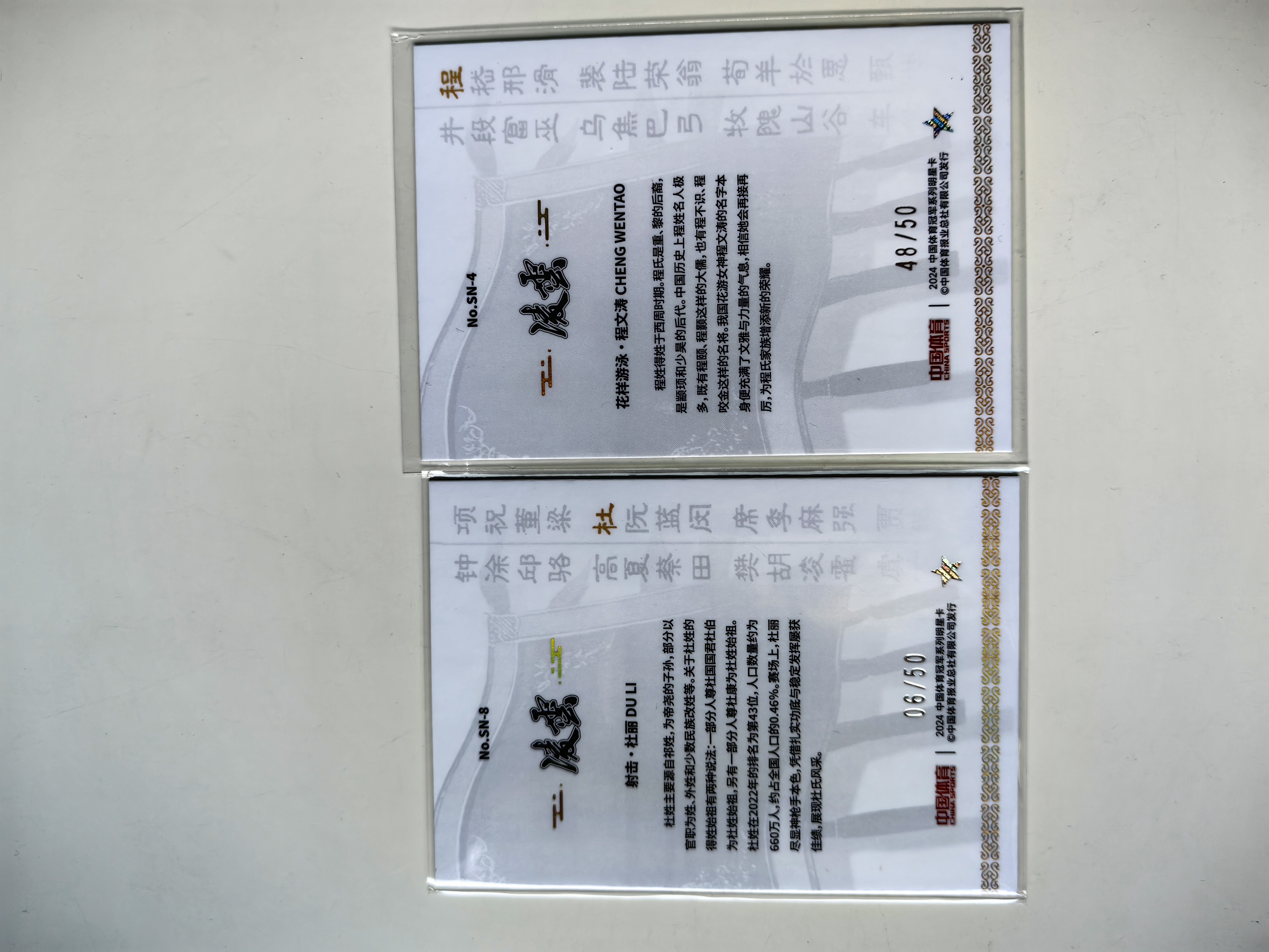 2024 奇卡 QICA 中国体育 凌云 程文涛 美女 杜丽 50编 红碎冰 百家姓 特卡 2张打包 lot 实卡精美 收藏必备