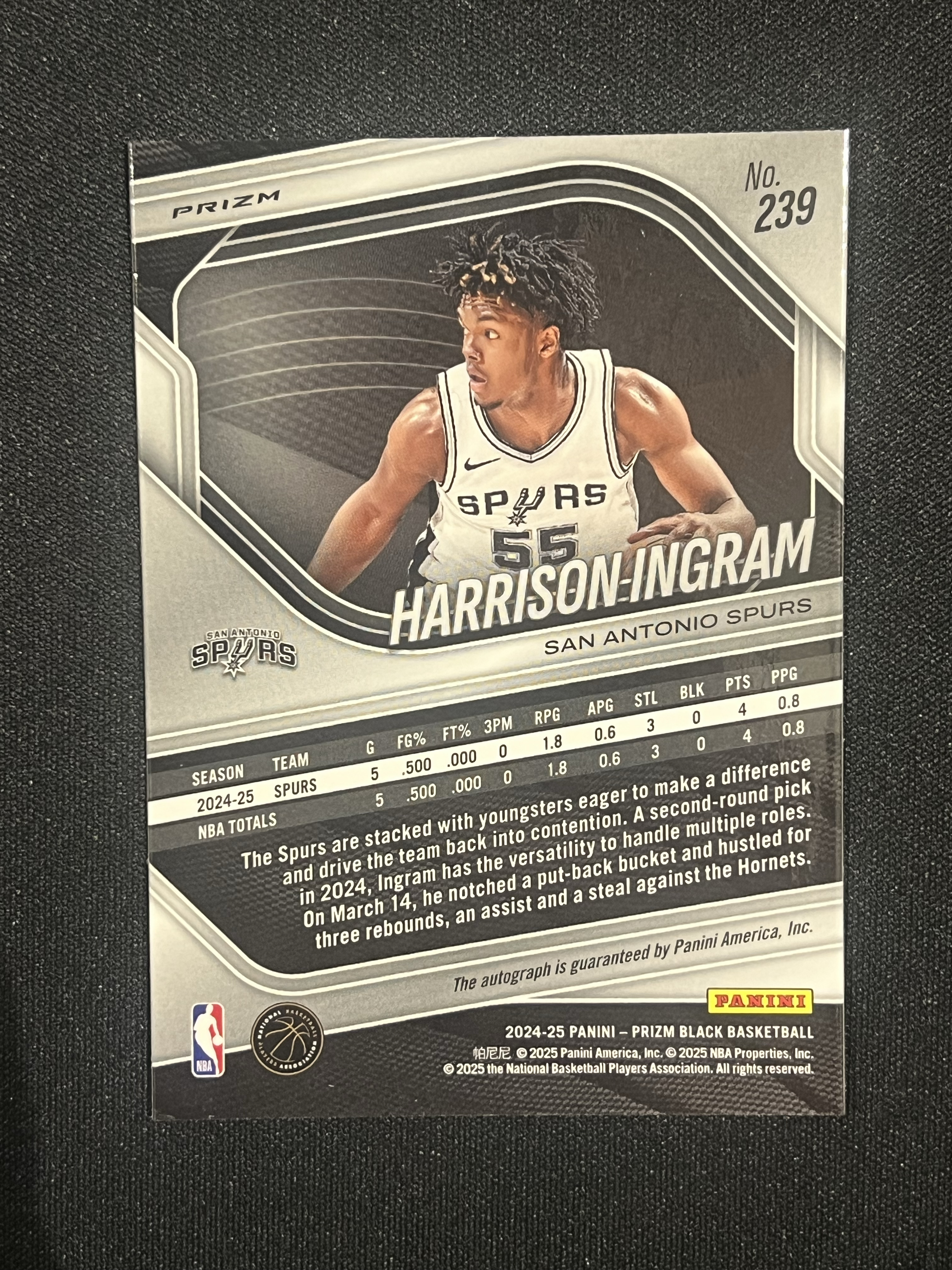 【卡卡星拍卖】2024-25 Panini Prizm Black Harrison Ingram RC 马刺 哈里森英格拉姆 新秀 折射 银折 签字 卡品如图 黑阿拉