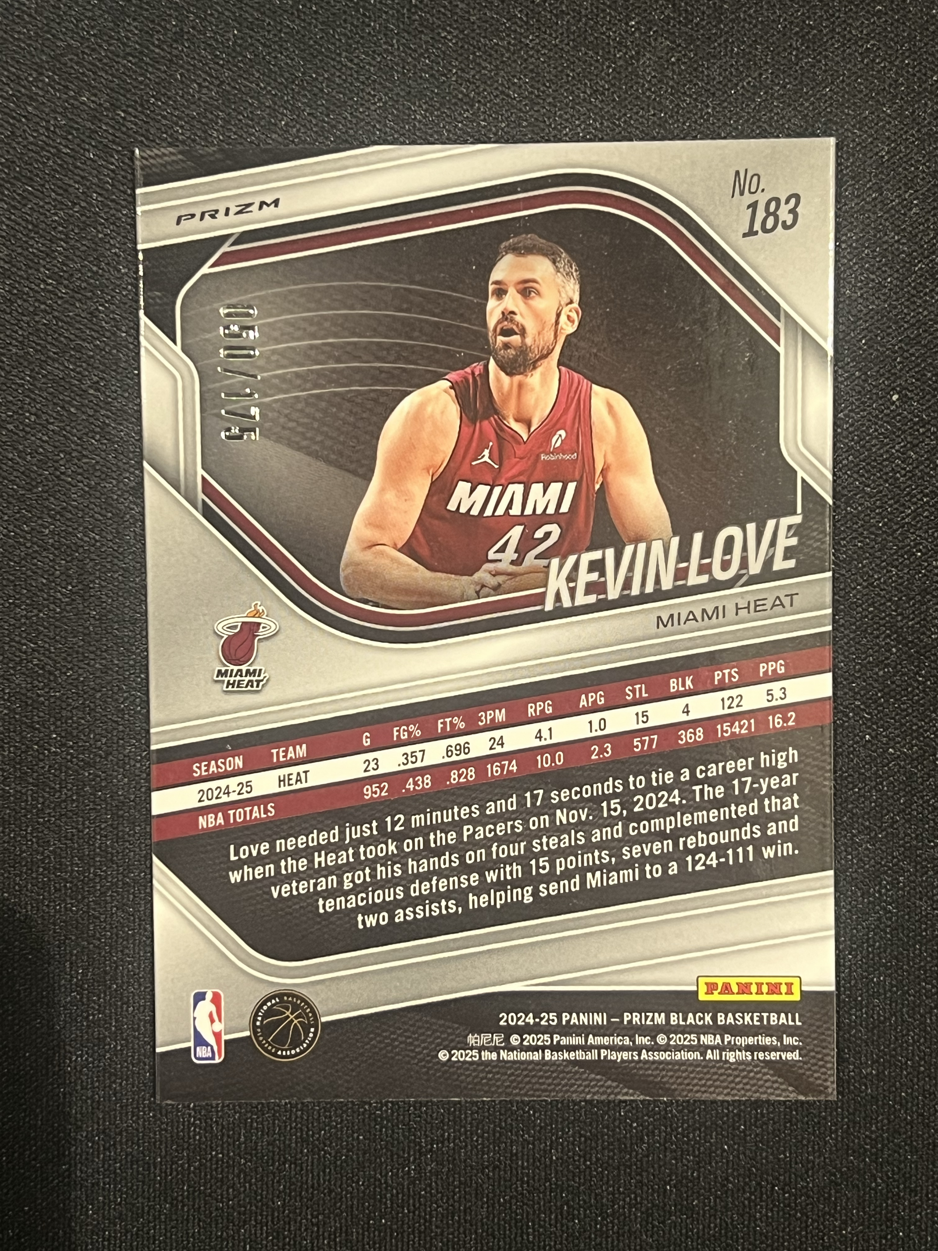 【卡卡星拍卖】2024-25 Panini prizm black Kevin Love 热火队 凯文乐福 折射 白折 175编 卡品如图 黑阿拉