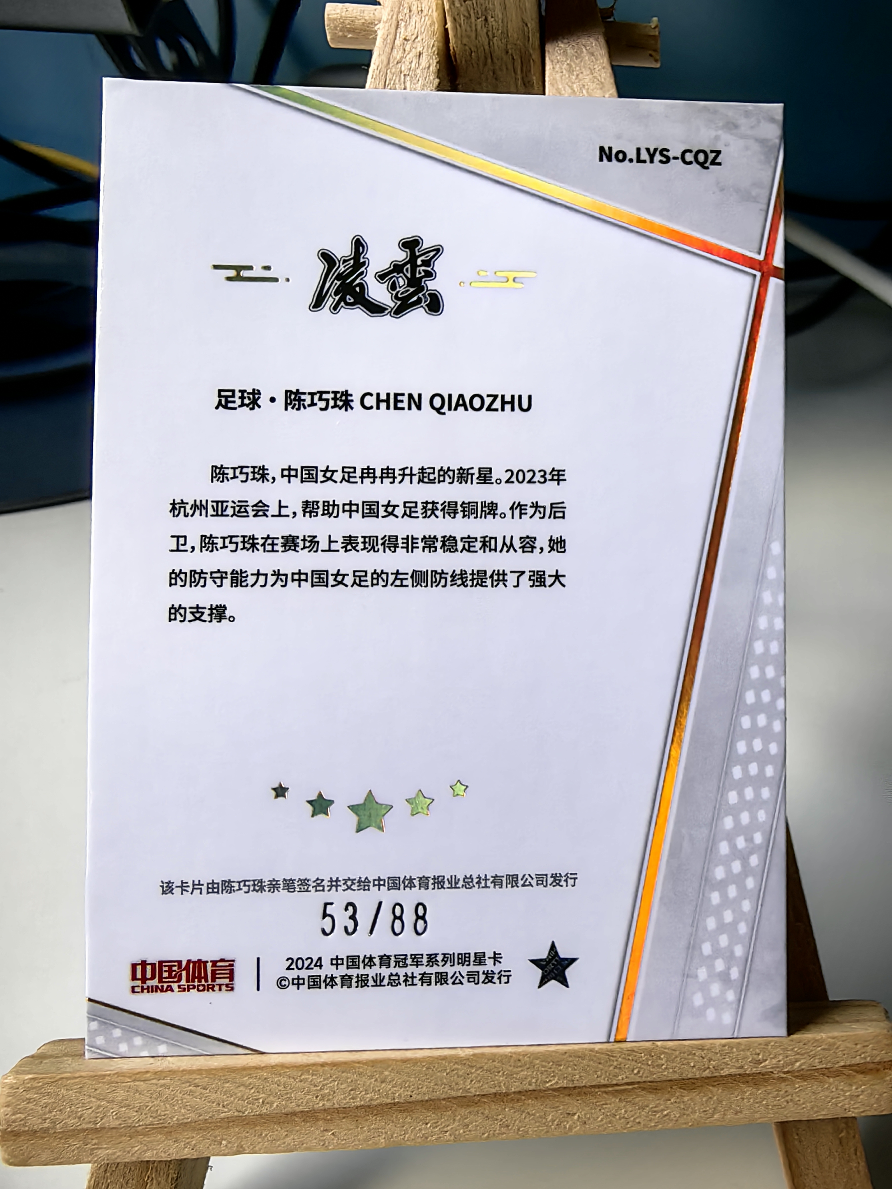 2024 奇卡 QICA 中国体育 凌云 陈巧珠 足球 美女 陈巧珠 88编 蓝平行 签字 实卡精美 收藏必备