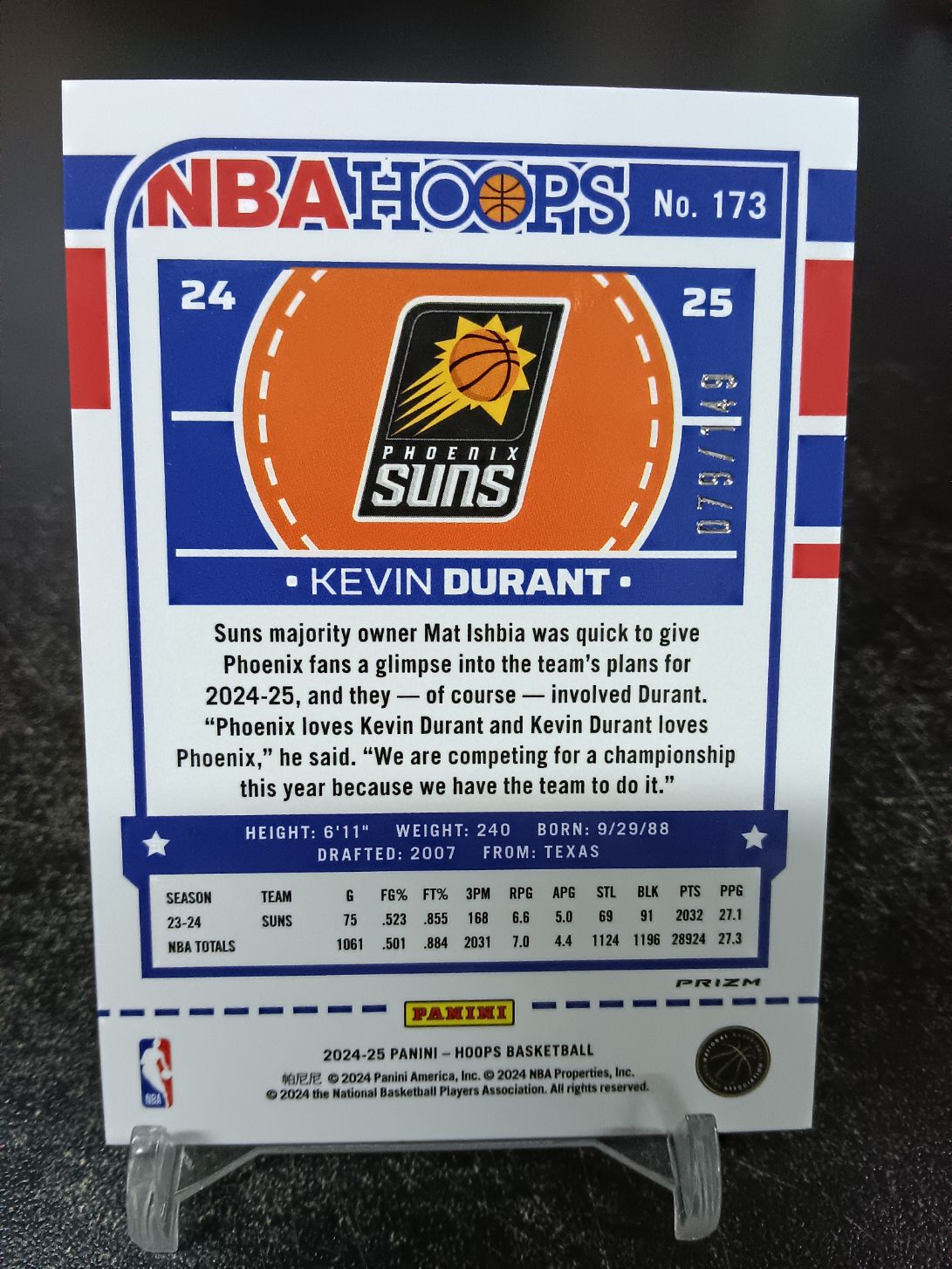 【浩行拍卖 截标预付82%】2024-25 panini hoops Kevin Durant 太阳 凯文 杜兰特 死神 绿折 折射 79/149编 专收必备 瑕疵看图「便节」1110A01牟