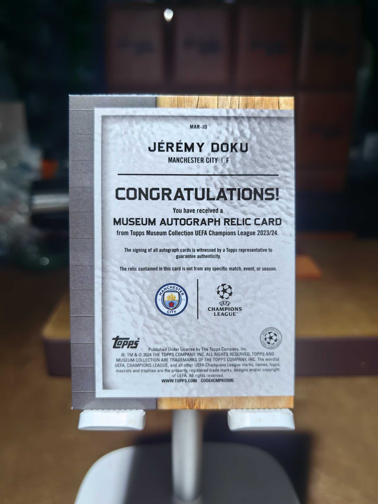 2023-24 Topps 博物馆 Jérémy Doku 限量43/99编 曼城 多库 球衣物料 签名签字 完美签 肉眼未见明显瑕疵 个人收藏 投资 凑套绝佳