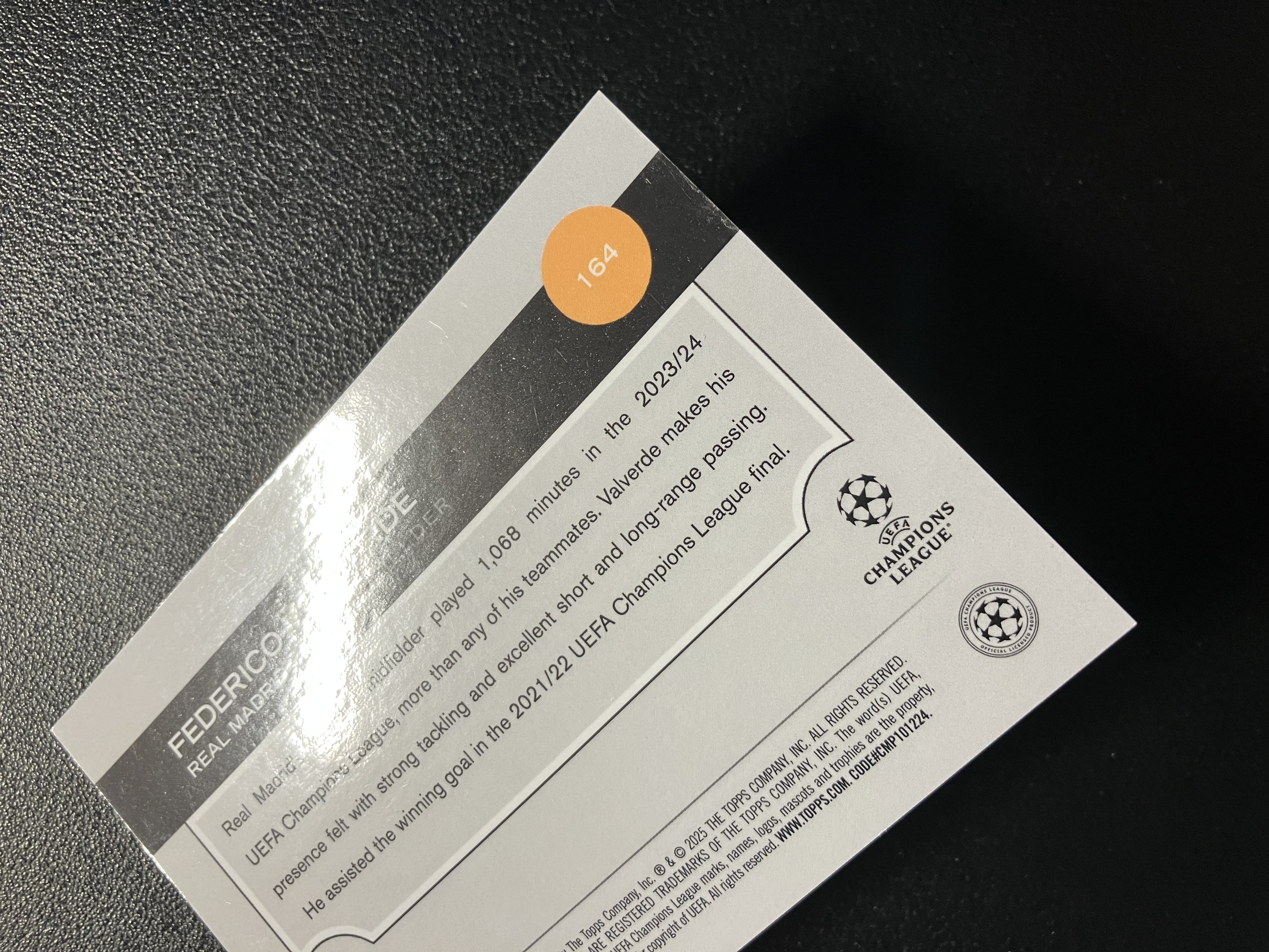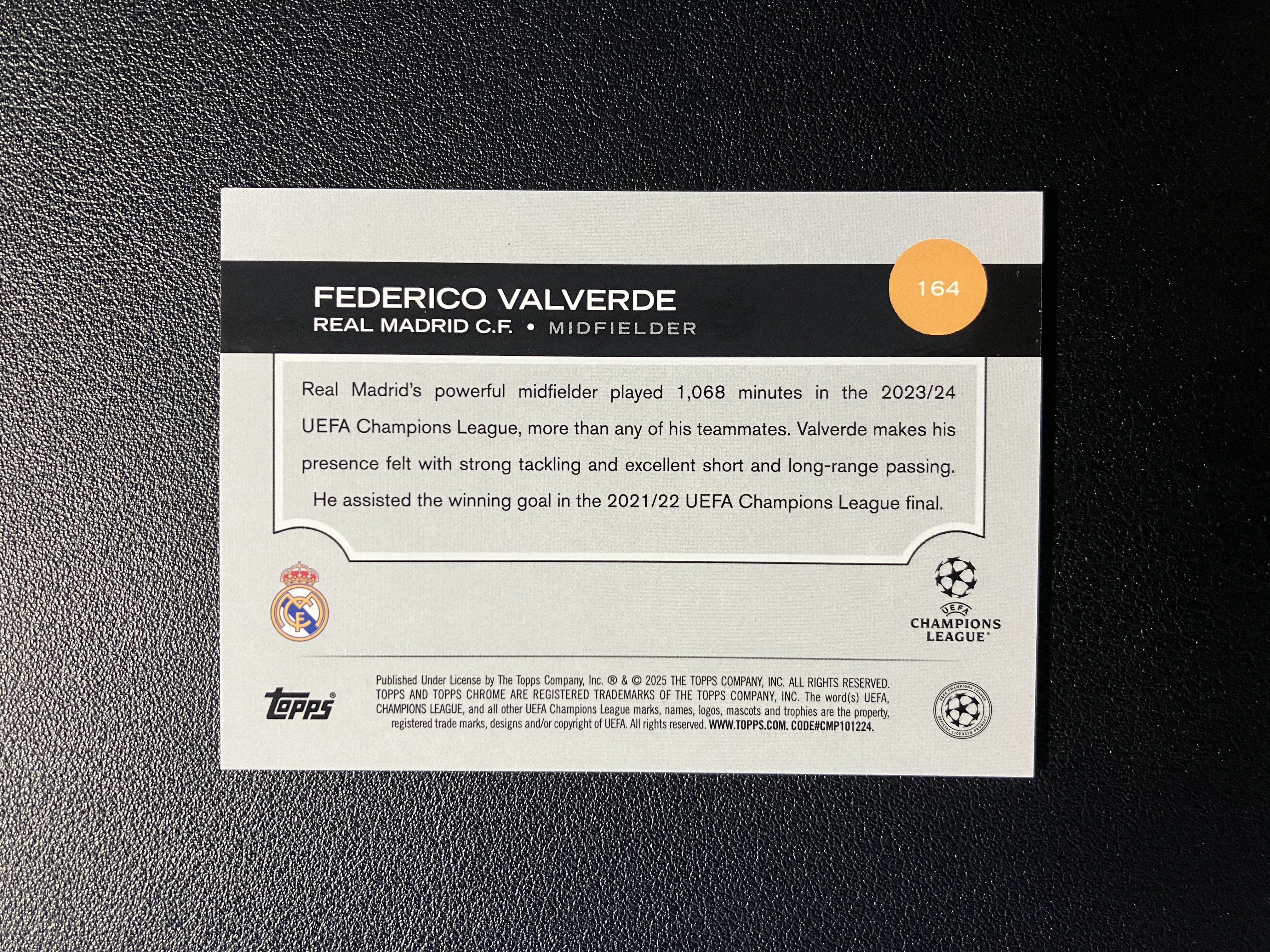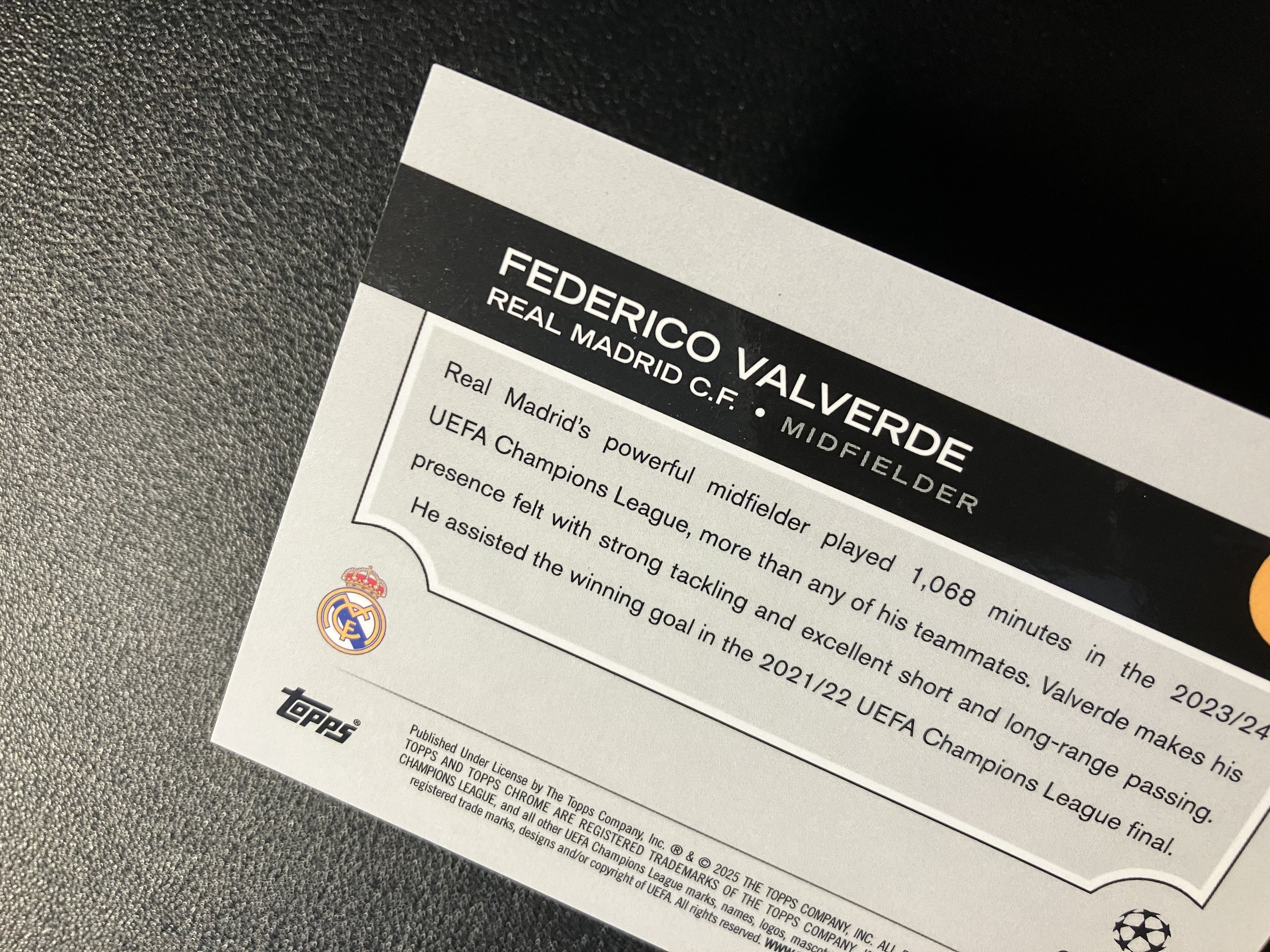 2025 Topps Chrome Federico Valverde 欧冠蓝宝石 巴尔维德 34/49编 1/50编 首编 金碎冰折 皇马 乌拉圭 82 中场 队长 卡品如图 A003