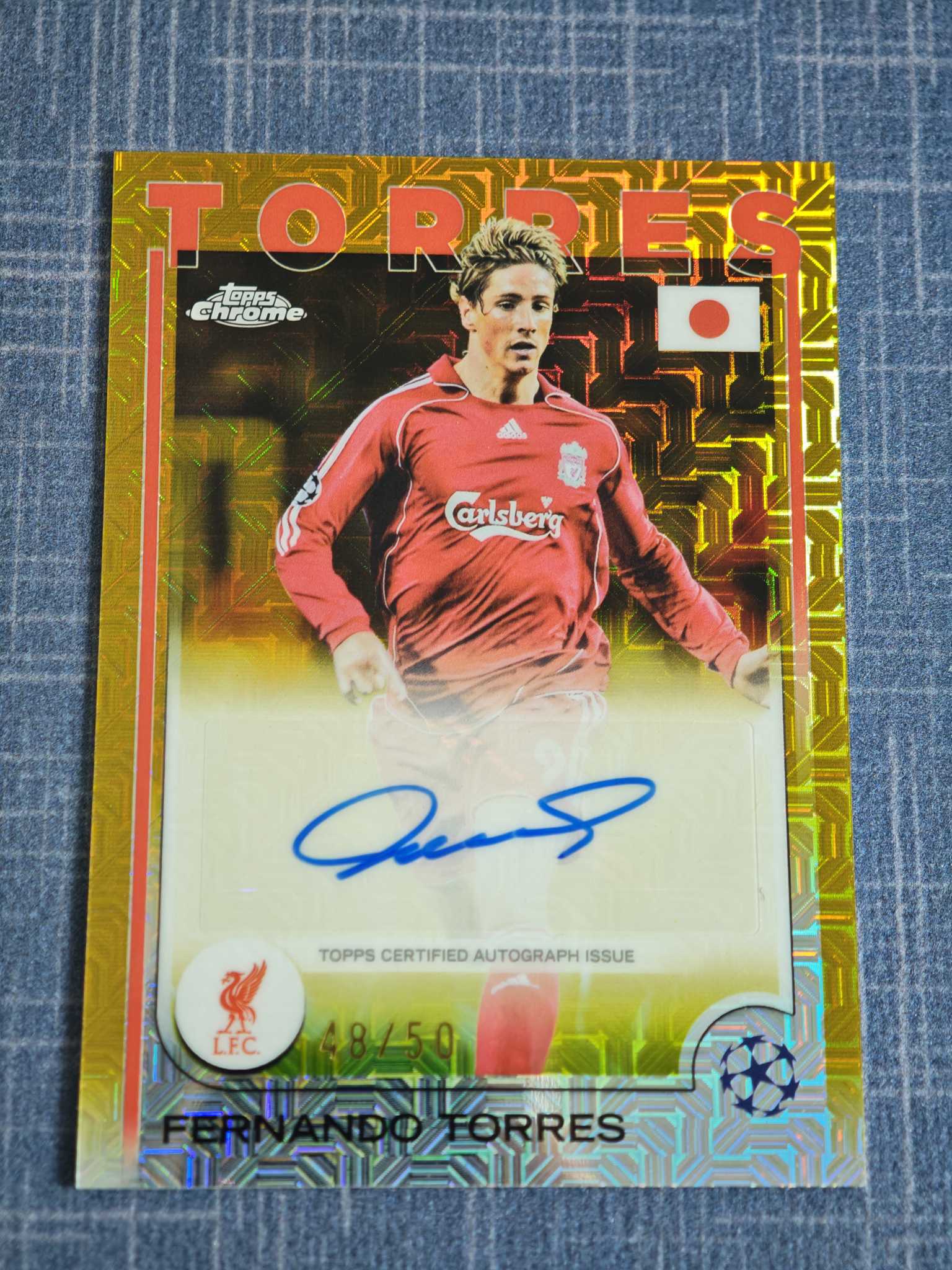 【小灰机】2024-25 Topps Chrome日版樱花盒 Fernando Torres Japan 费尔南多 托雷斯 利物浦 欧冠 签字 48/50编 金mojo折 卡品微瑕如图 lion