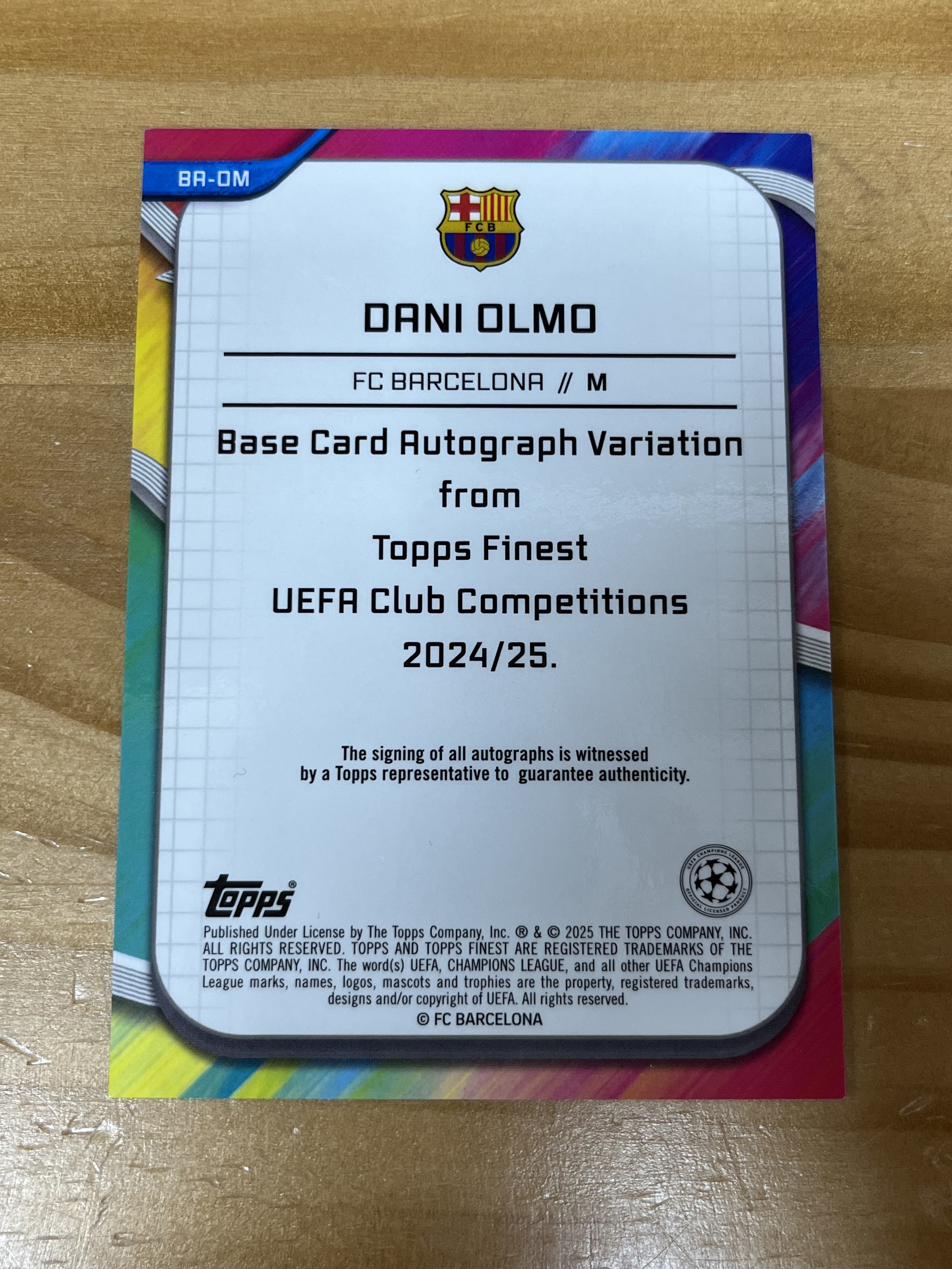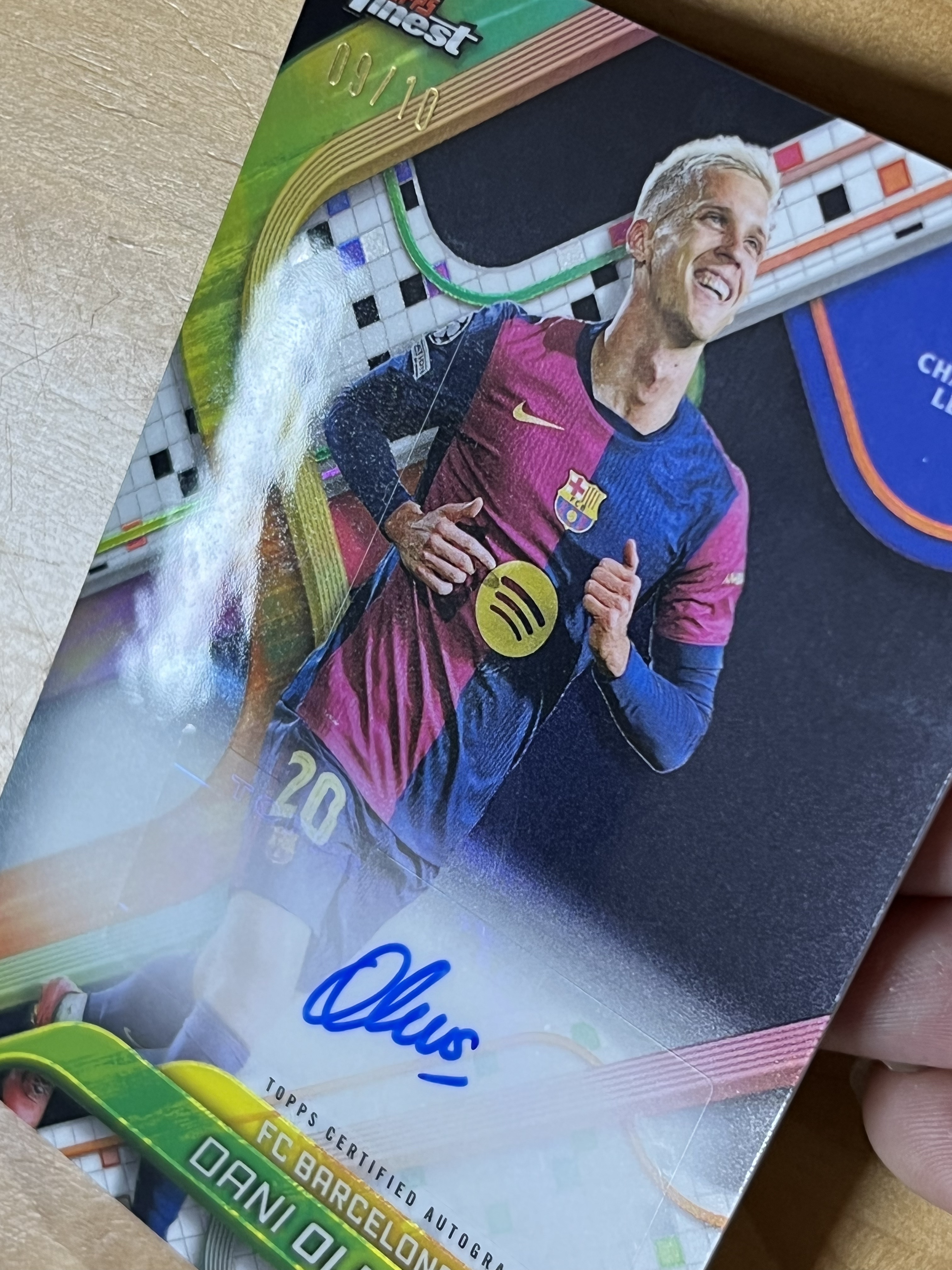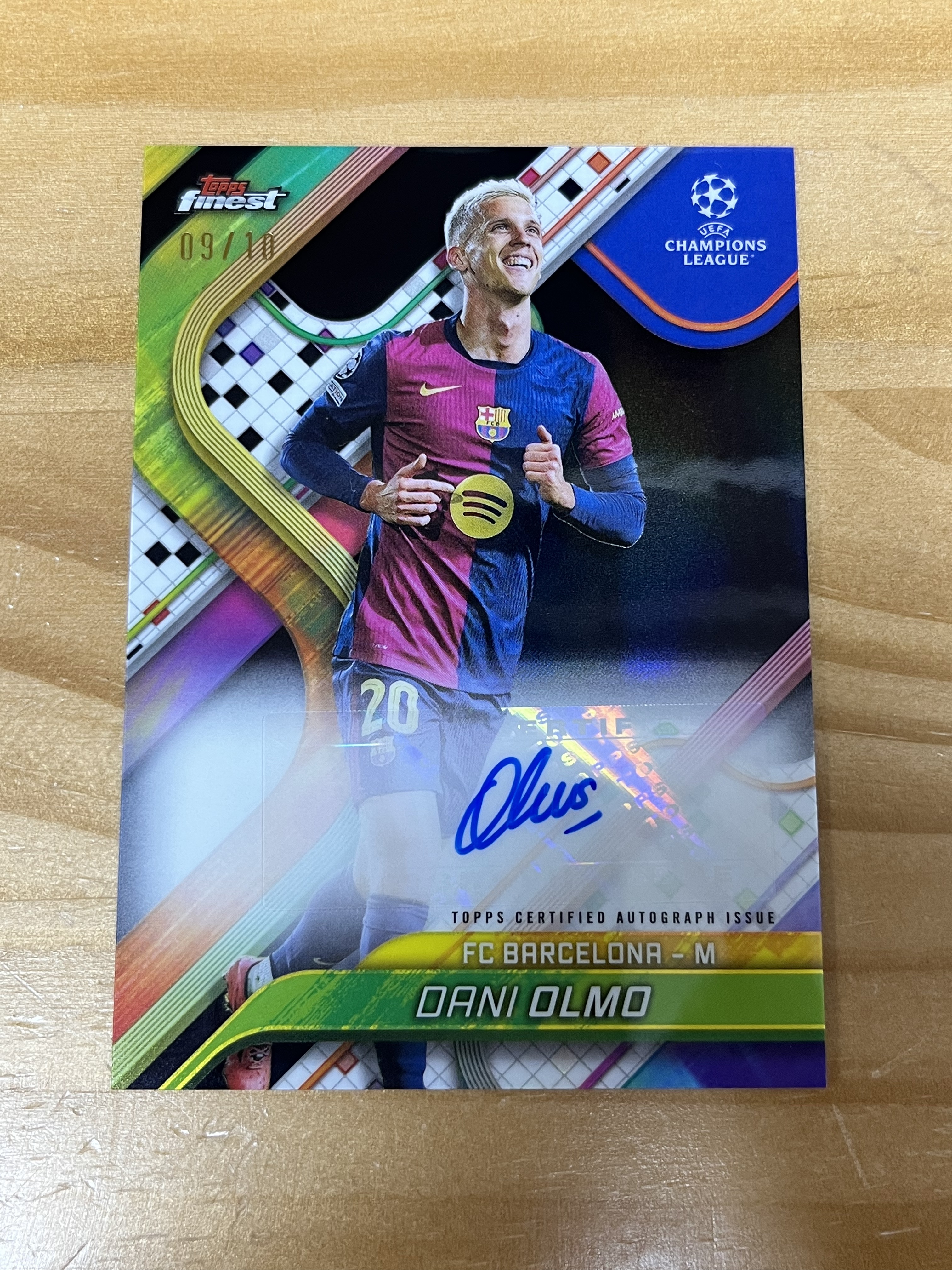2024-25 TOPPS FINEST UEFA 欧冠 巴萨 Dani Olmo 达尼 奥尔莫 base 黑折签字卡 9/10 卡面有划痕 花布袋