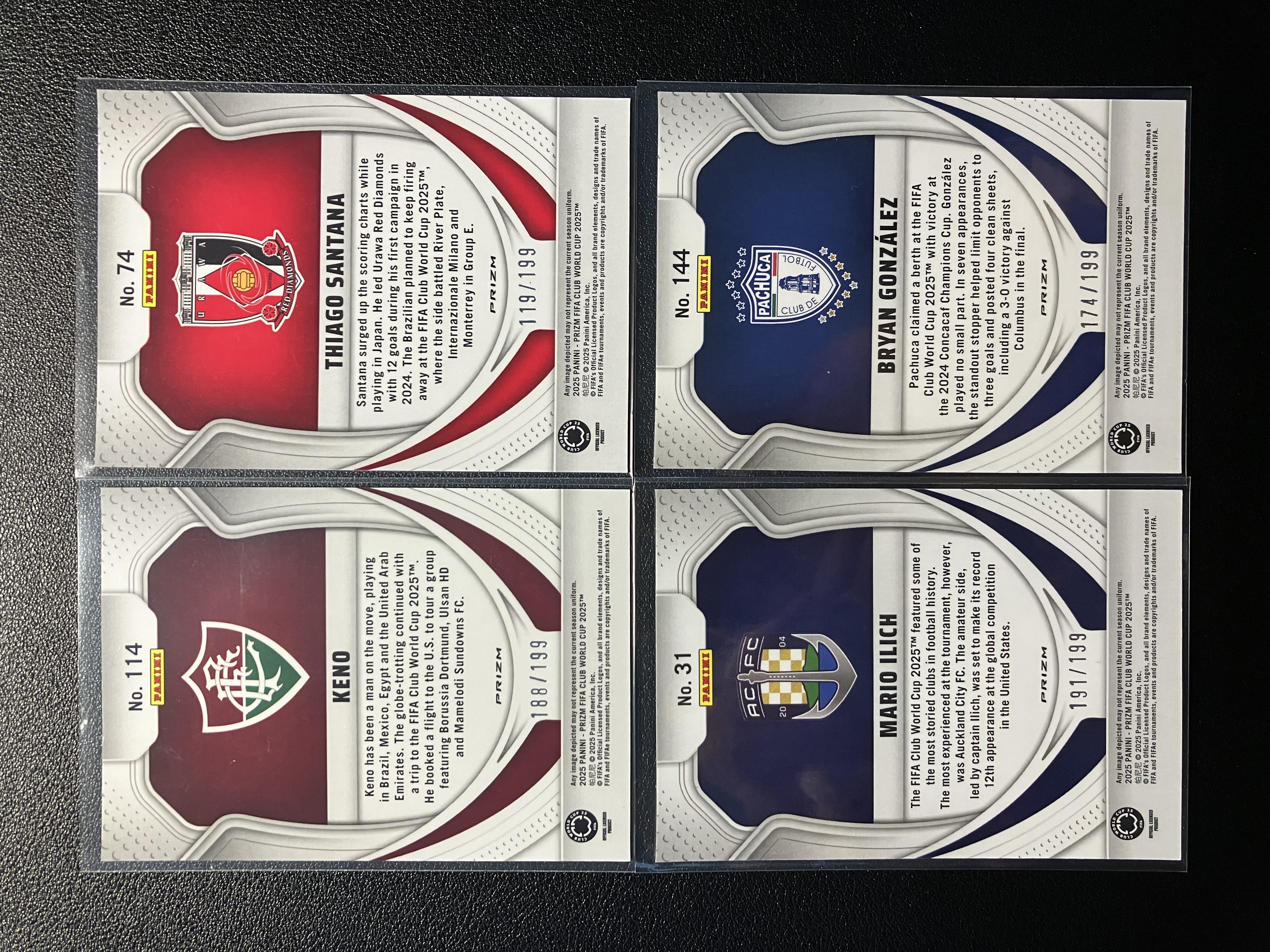 2024-25 Panini Prizm Lot RC 世俱杯PZ系列 199编 红折*4张 基诺&蒂亚戈-桑塔纳&布莱恩-冈萨雷斯&伊里奇 RC新秀 Lot不保卡品 A003