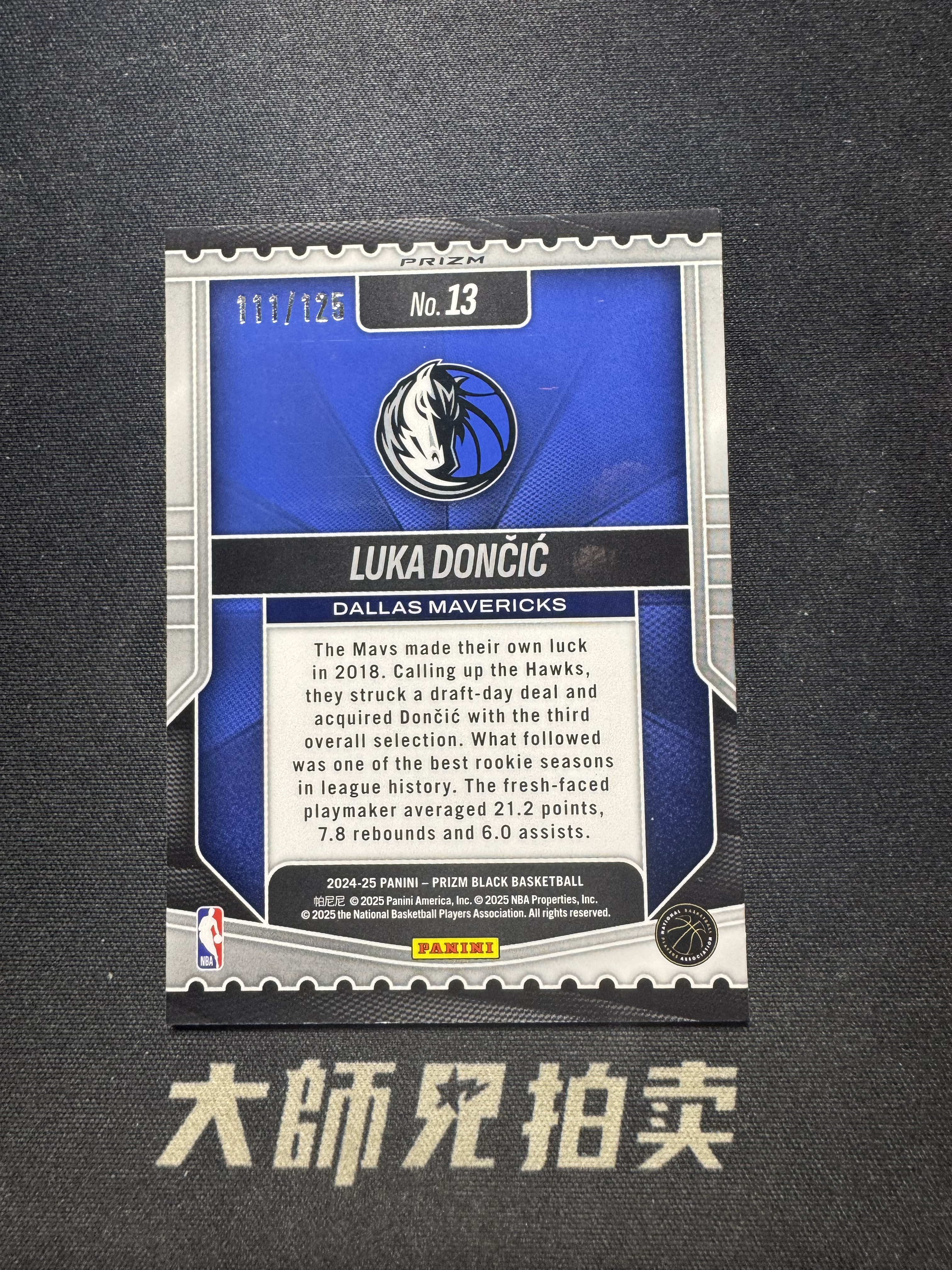 【大师兄拍卖】2024-25 Panini prizm black LUKA DONGIC 独行侠 卢卡 东契奇 pz 新秀乐透特卡 选秀夜特卡 /125编 蓝碎冰 通行品-黑猫-