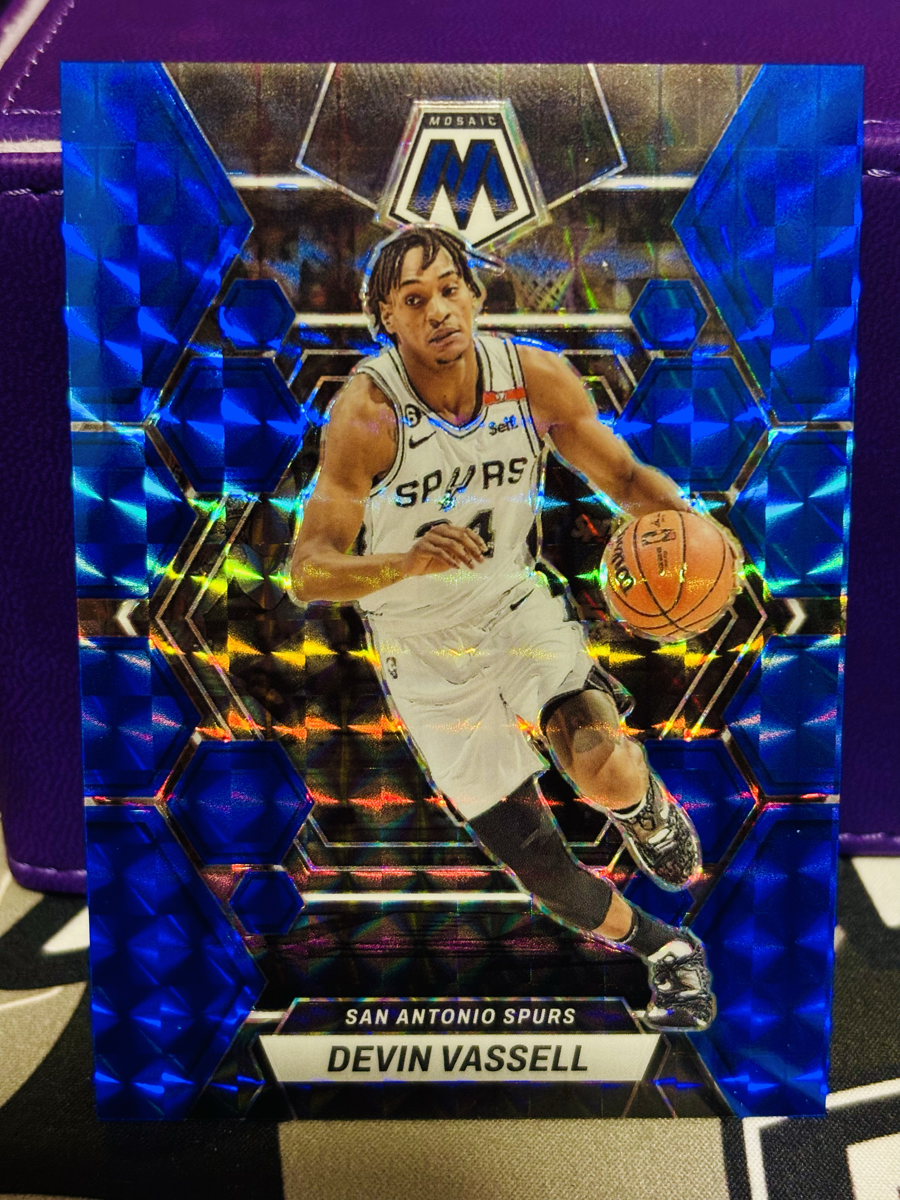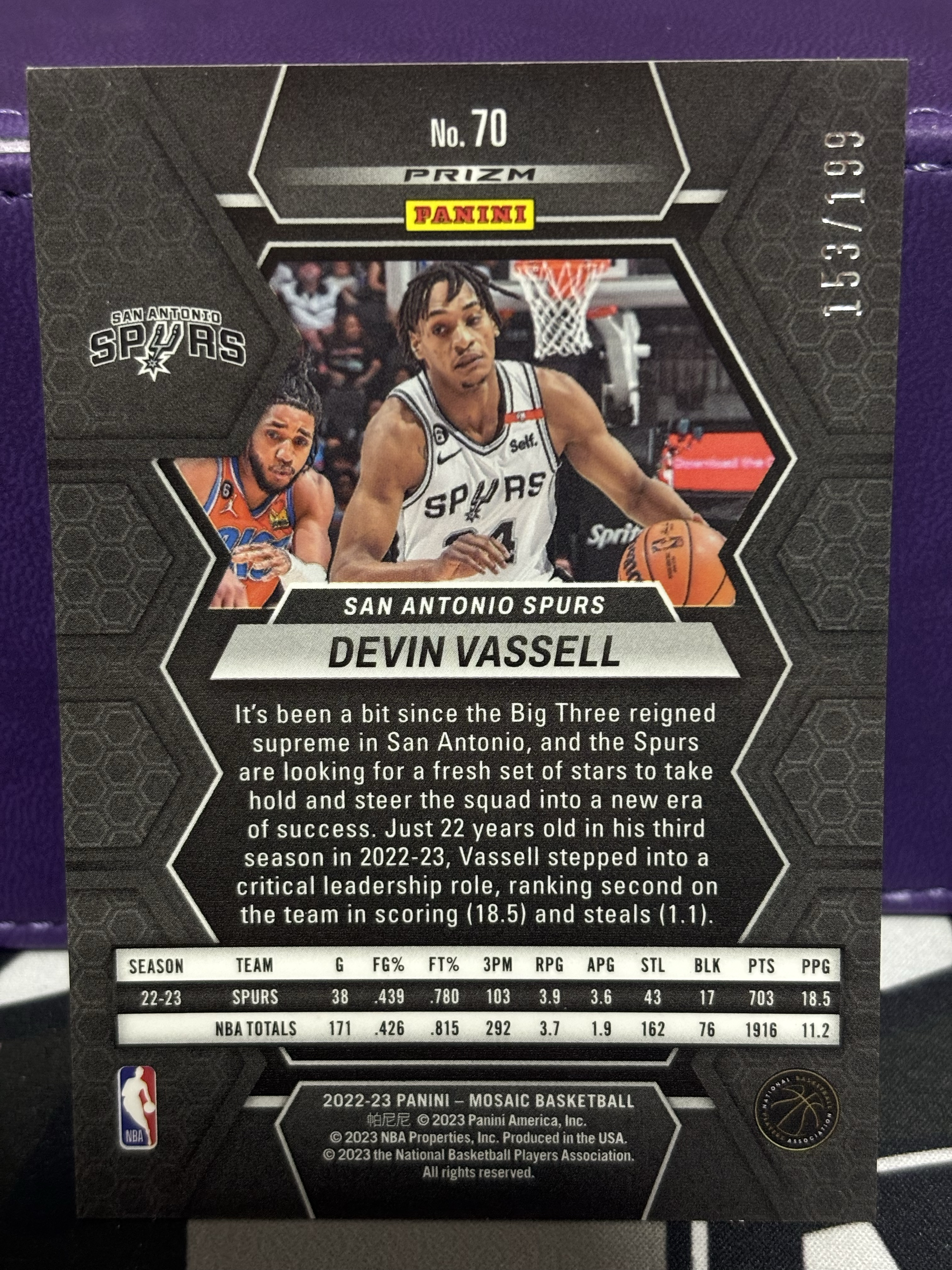 2022-23 Panini Mosaic Devin Vassell 马赛克 马刺队 德文 瓦塞尔 199编蓝马赛克折 153/199编蓝折 维克托 文班亚马、斯蒂芬 卡斯尔队友 不保卡品