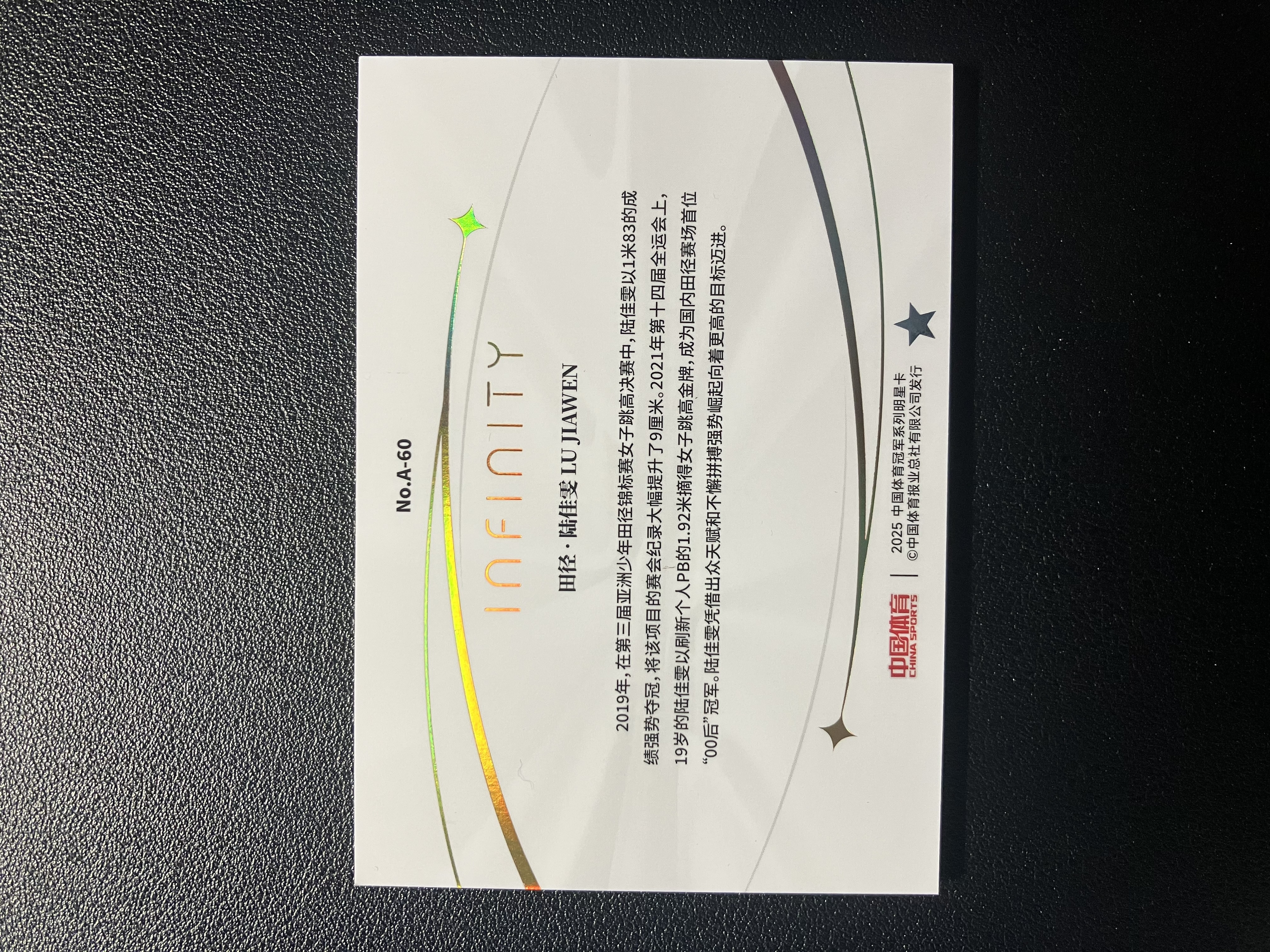 2025 奇卡 QICA 中国体育 Infinity 无限 陆佳雯 3/10编 金平行 阿尔法特卡 田径 FS未来之星 中华人民共和国第十四届运动会女子跳高金牌 卡品如图 A115