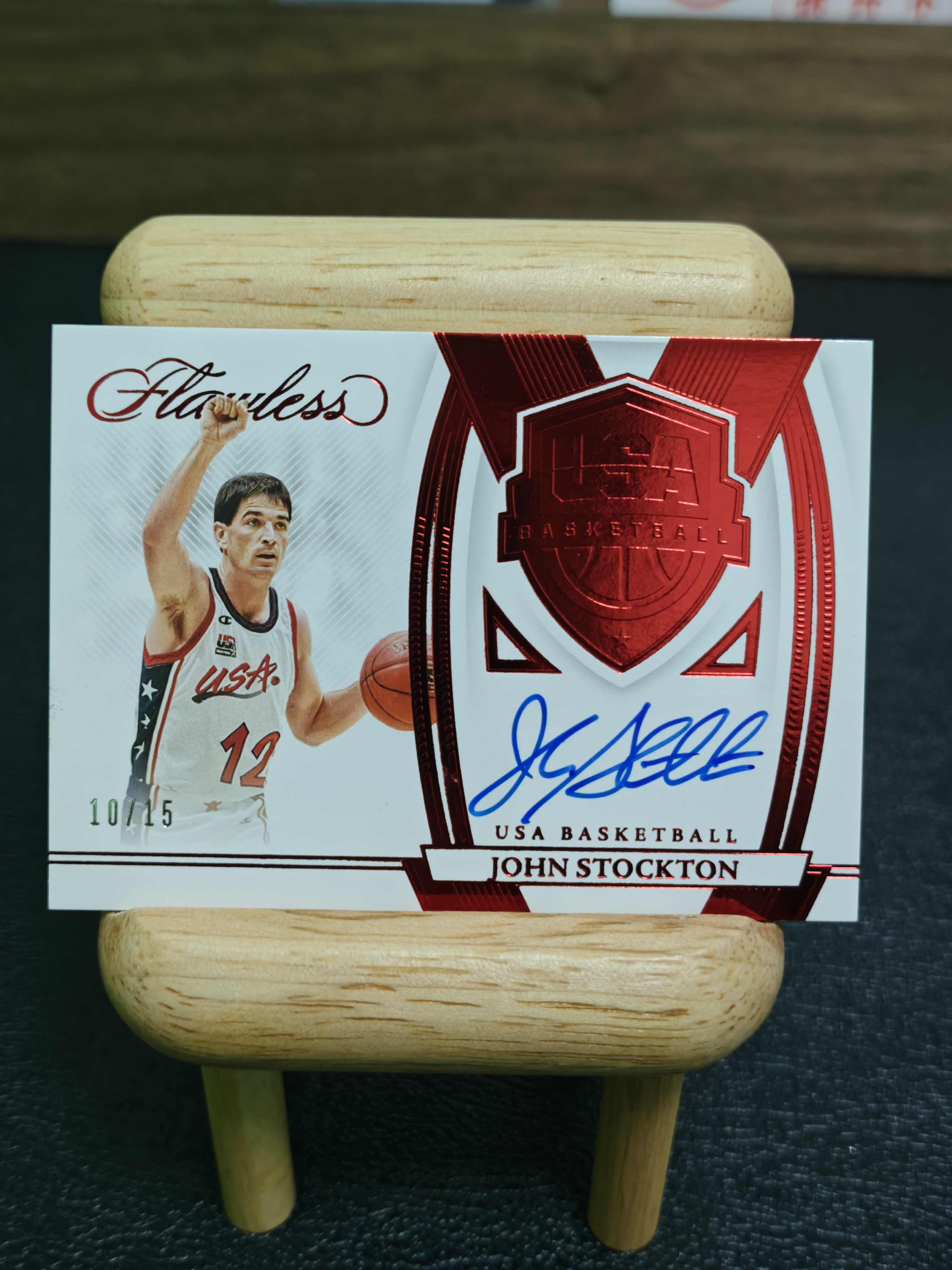 2021-22 Panini Flawless John Stockton 手提 爵士 斯托克顿 10/15编 USA美国梦之队 红版 签字 历史助攻王【卡品如图】(贾)