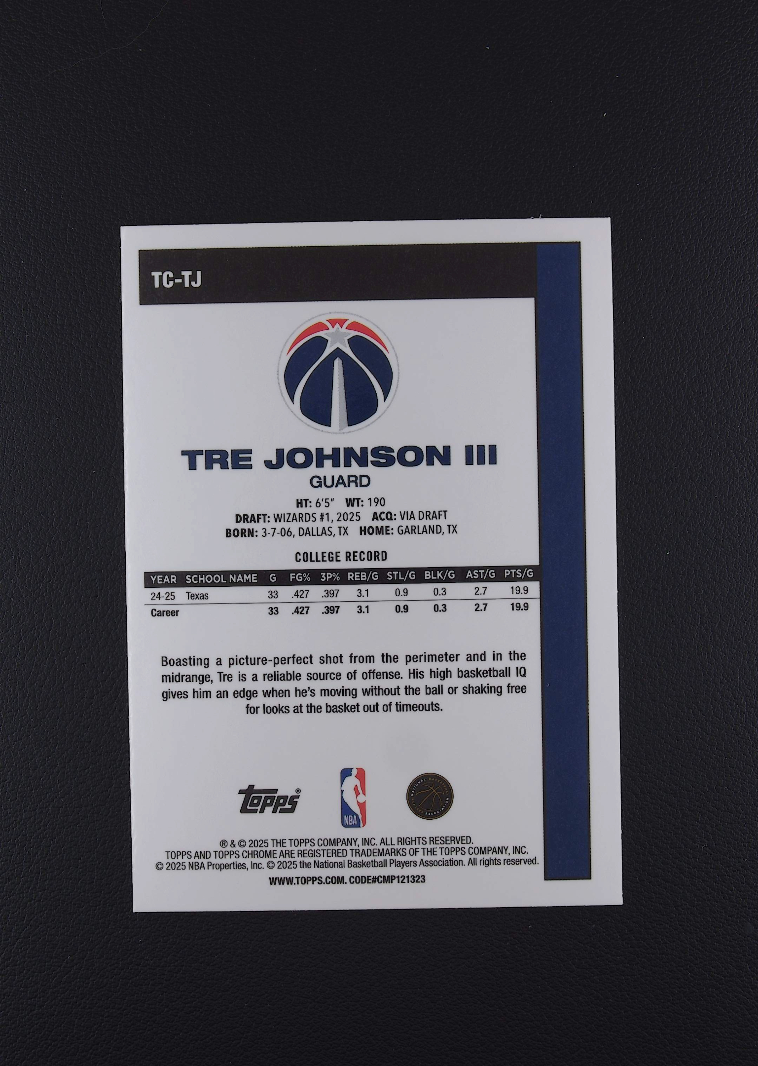 ![2025 Topps Flagship Tre Johnson III RC [808零手续] 篮球旗舰 特雷 约翰逊 三世 mojo折 45周年 1980复古 新秀 奇才 凑套必备 卡品如图 谦谦](https://images.cardhobby.com/cf27d6e58df2e9b2fc14c4605f7c4dc41762176715681.jpg)