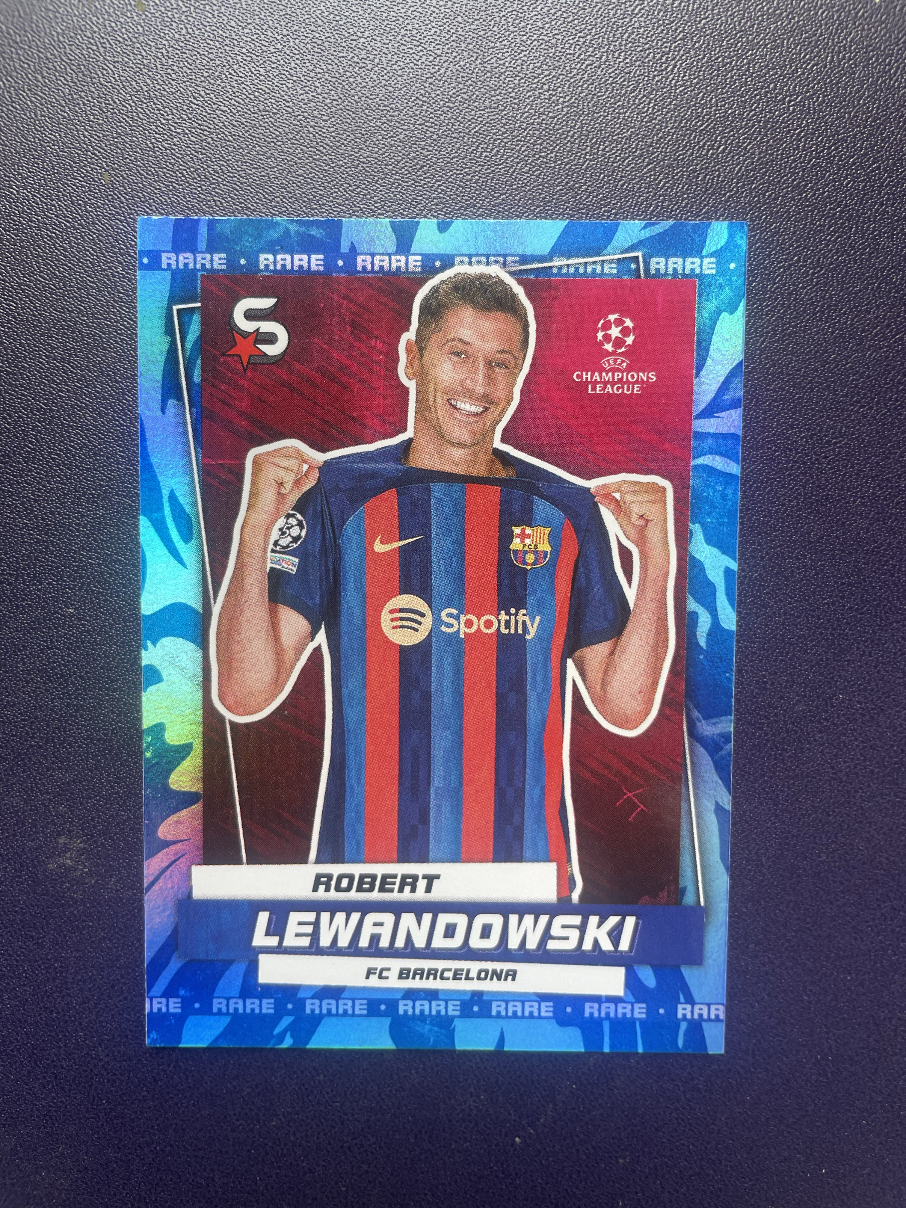 2023 Topps Super stars Robert Lewandowski 莱万多夫斯基 巴萨 巴塞罗那 欧战 超巨 蓝波纹折 实卡精美 收藏凑套必备 细节如图不保卡品 亚马尔 加维队友