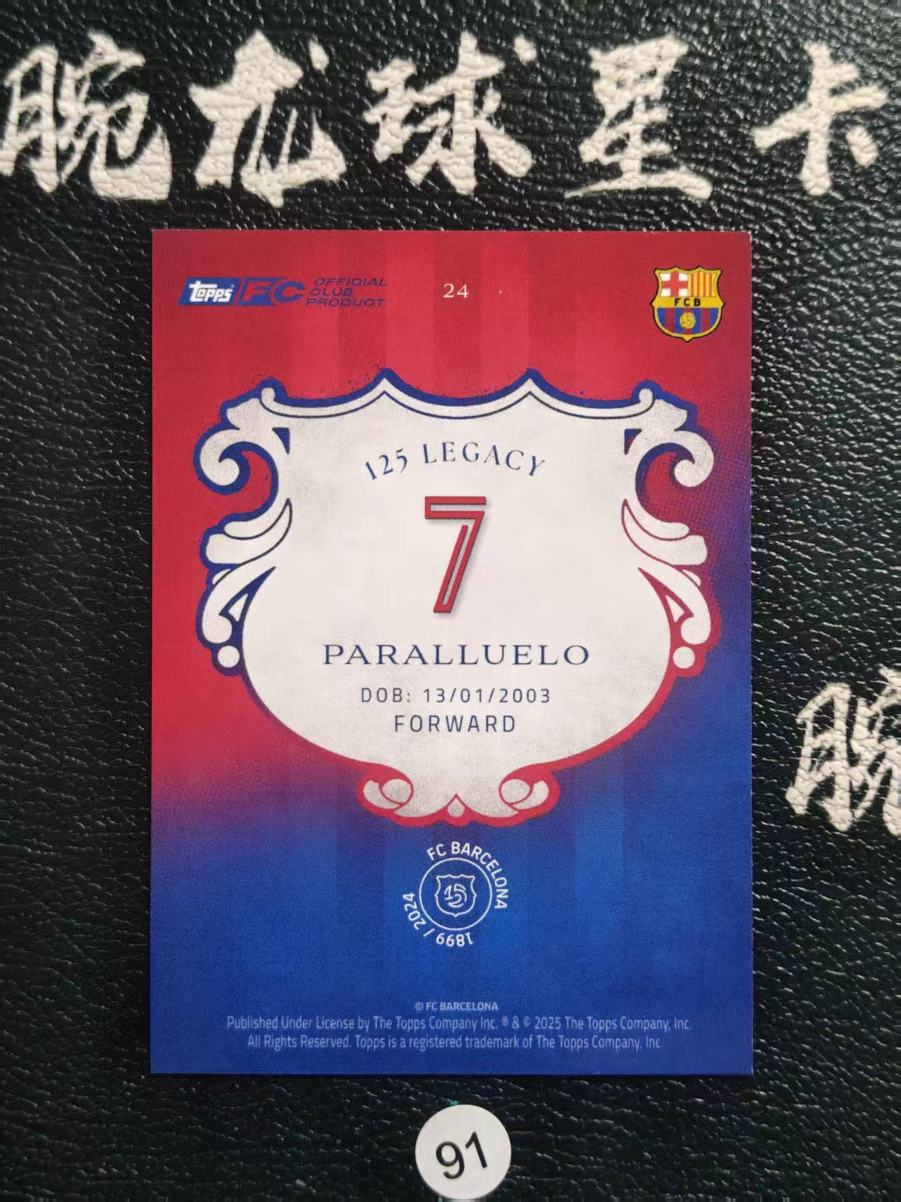 2025 【腕龙拍卖 接代卖】 腕龙略过AL3 Topps 巴萨125周年限定版 帕拉略罗 女足 巴塞罗那 粉折 80/99编 PARALLUELO 卡品如图 收藏必备