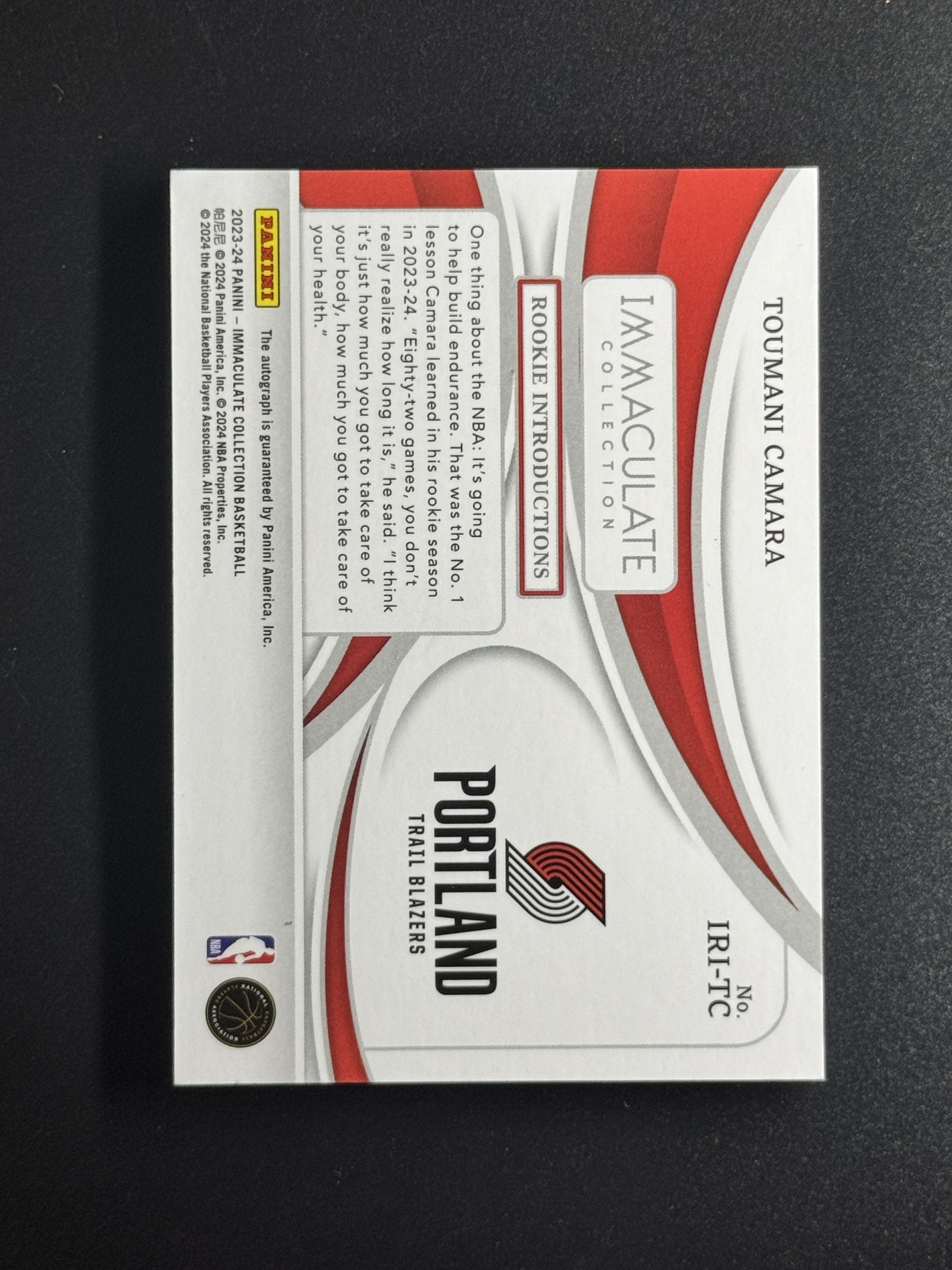 2023-24 Panini Immaculate Toumani Camara RC 【小花猪代卖】开拓者 新秀 图马尼 卡马拉 单一平行 签字卡签 新秀介绍签 99编 无平行(东东