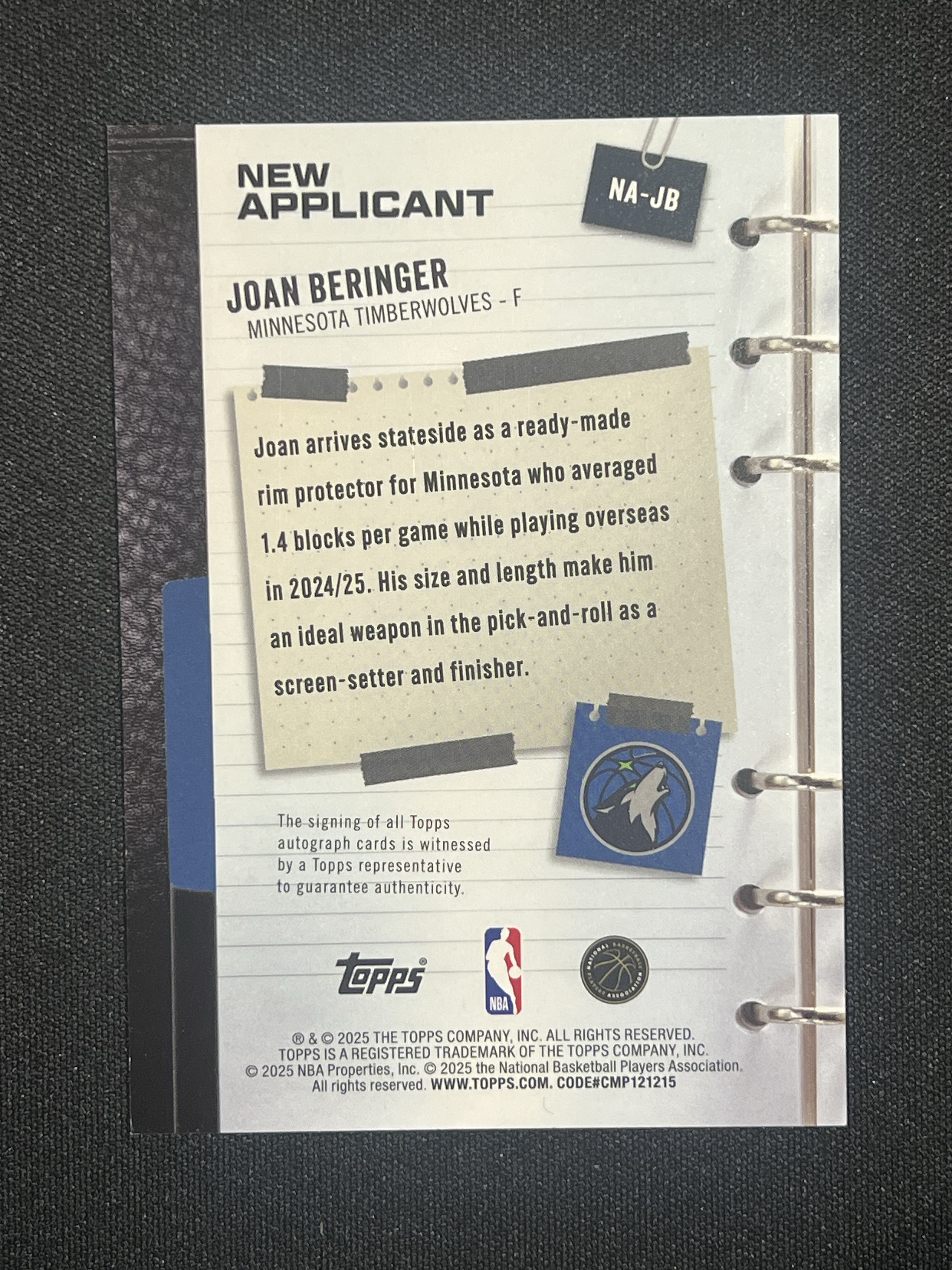 【卡卡星拍卖】2025-26 Topps RC Joan Beringer 森林狼 贝兰热 贝林格 签字 日记本 未来可期 卡品如图 cory