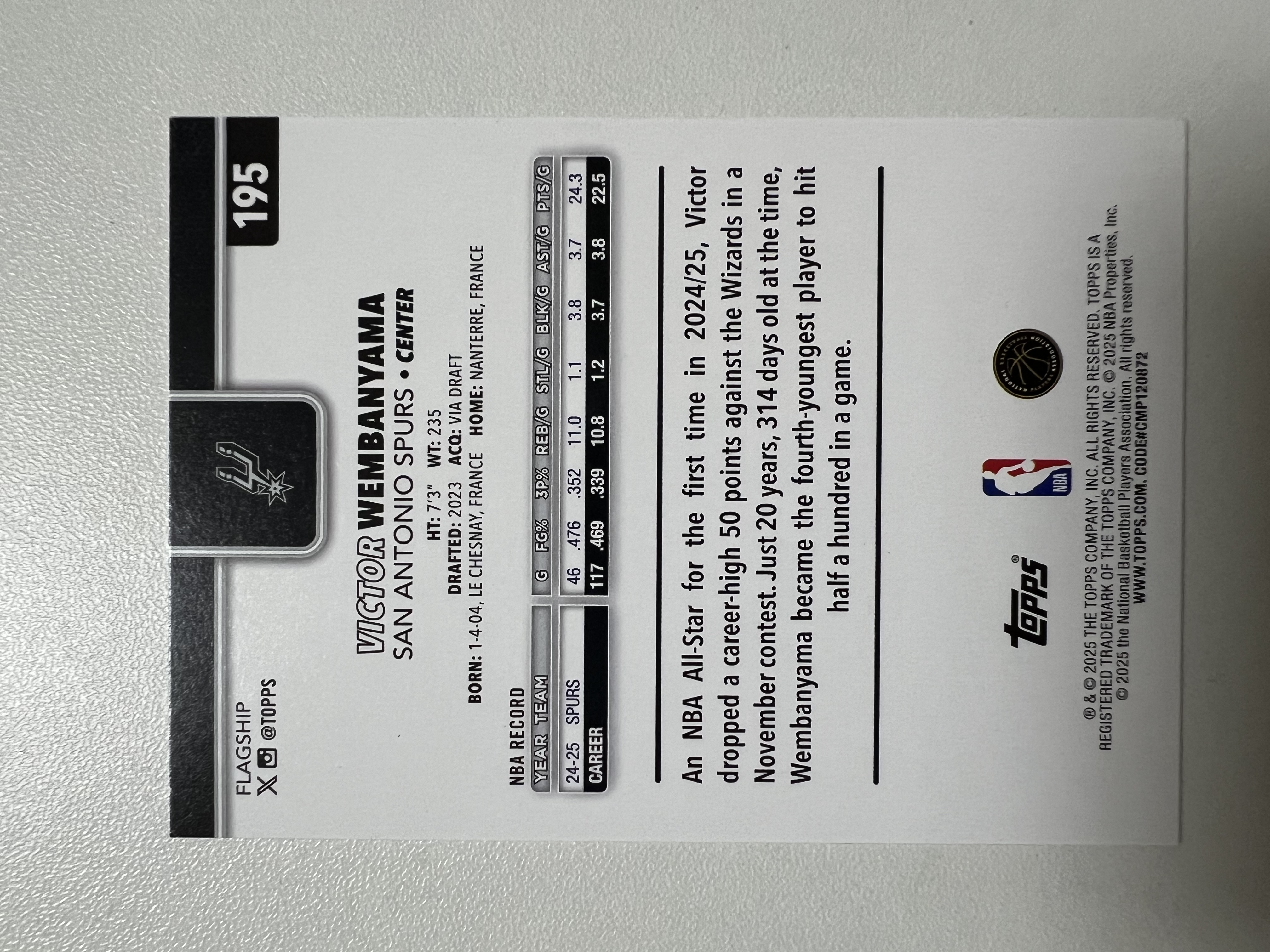 2025 Topps Topps Victor Wembanyama 文班亚马 马刺 收藏凑套 卡品如图 免费代拍(XS)