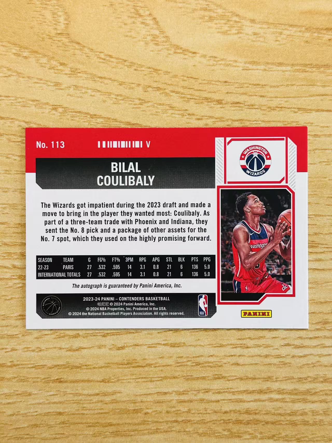 2023-24 Panini Contenders Bilal Coulibaly 嘿嘿代卖 球票 比拉尔 库利巴利 新秀 RC 签字 卡签 奇才 法国新星 收藏必备
