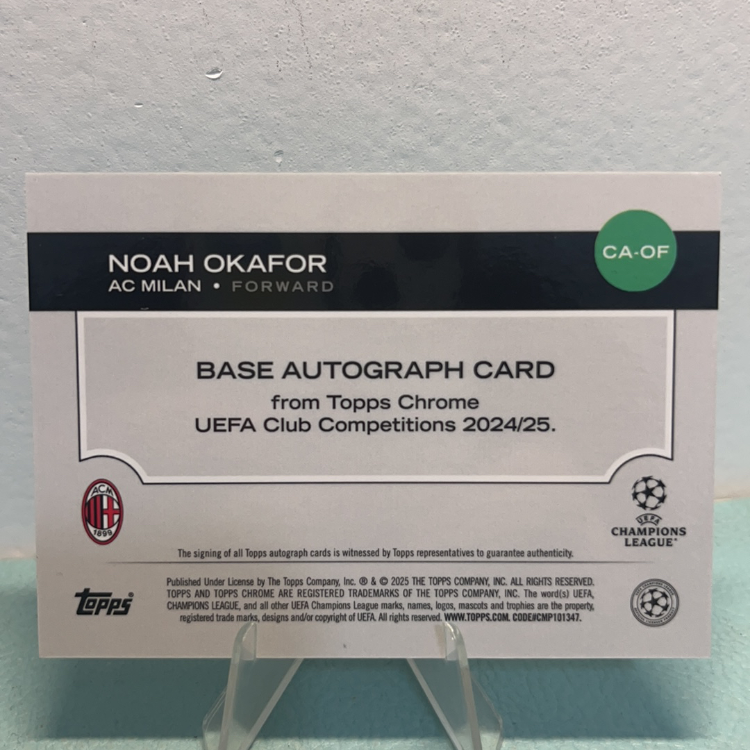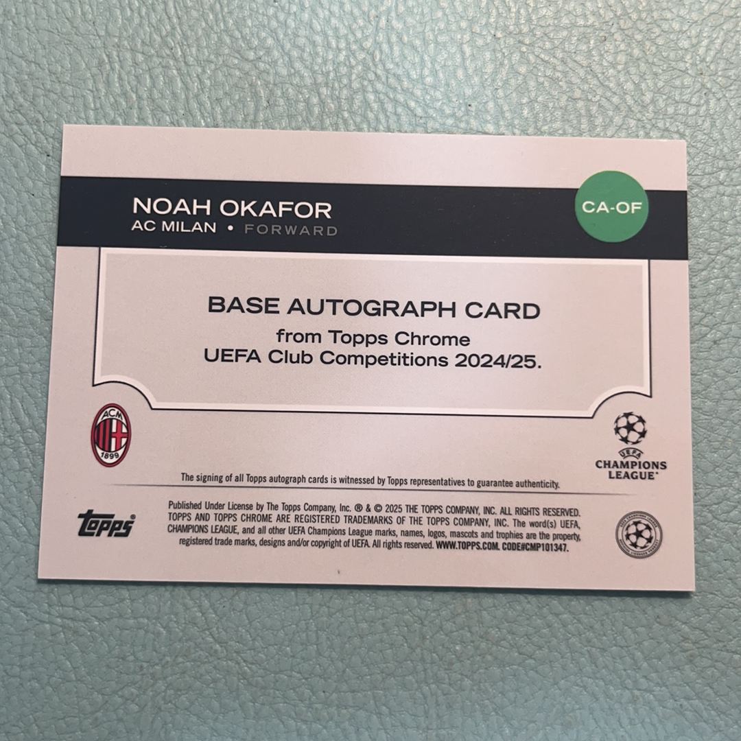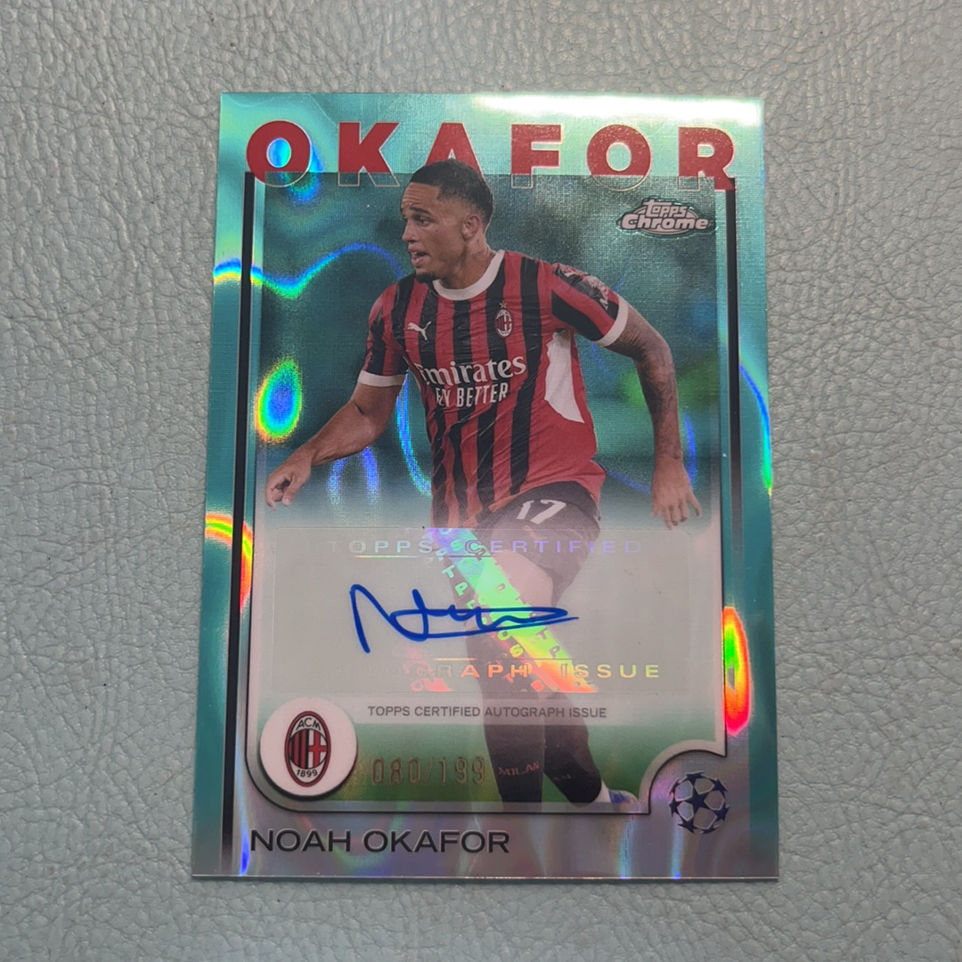 2025 Topps Chrome Noah Okafor 欧冠tc 诺亚 奥卡福尔 绿折 AC米兰 199编 签字 签名 折射 卡品看图mm7