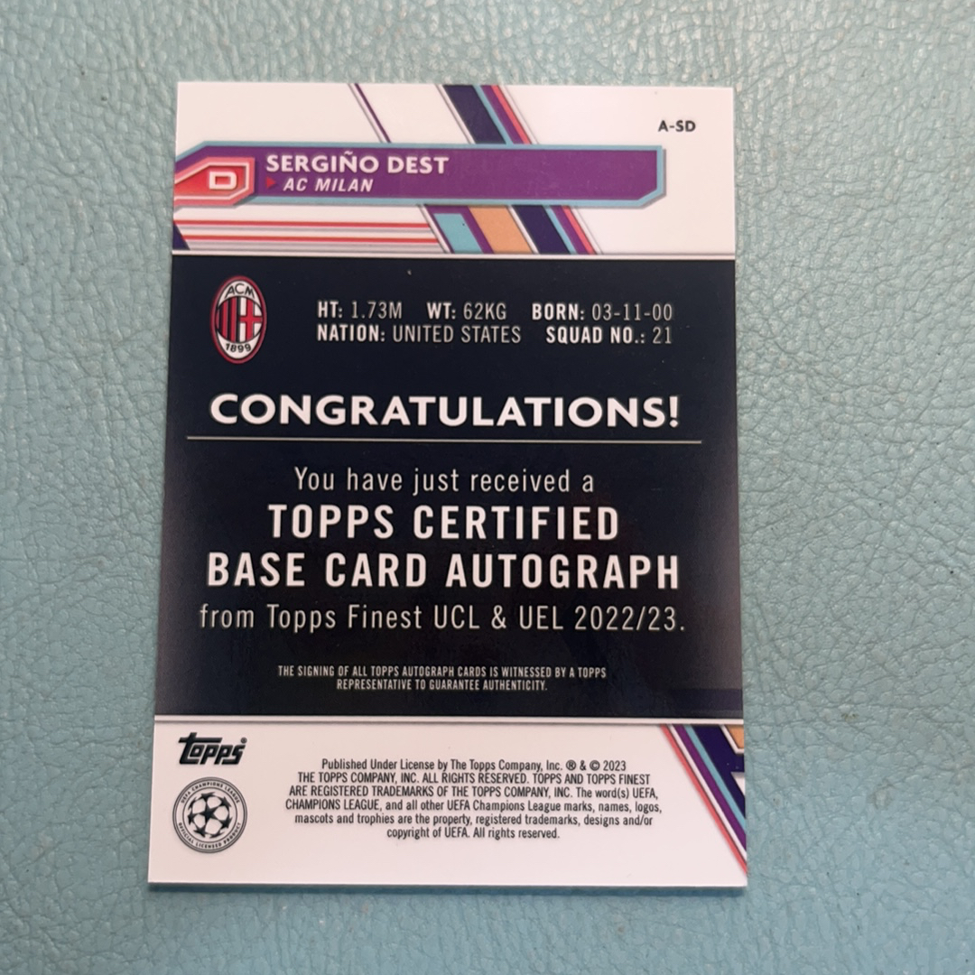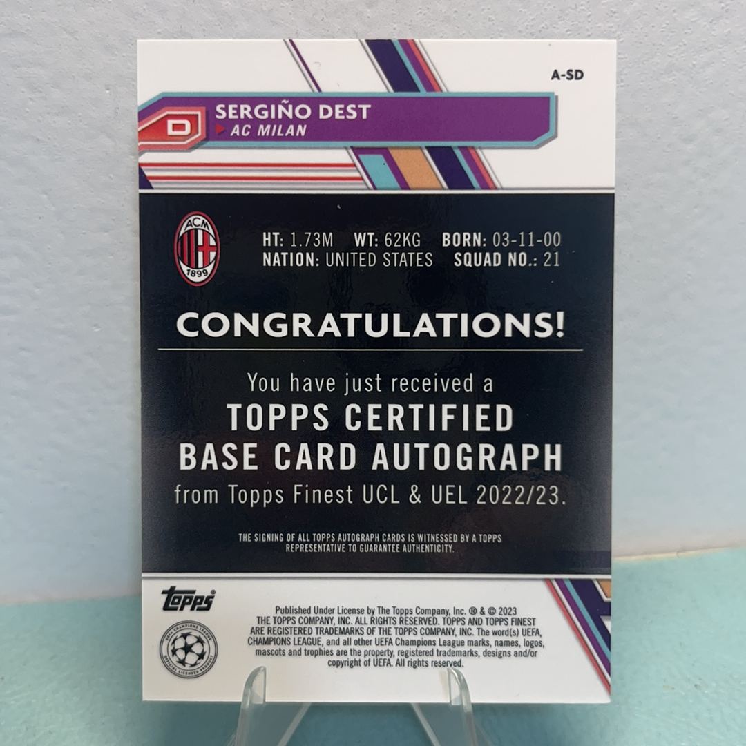 2023 Topps Finest Sergino Dest 欧冠 巴萨 巴塞罗那 美国 AC米兰 塞尔吉诺 德斯特 银折 签字 签名 卡品看图mm7