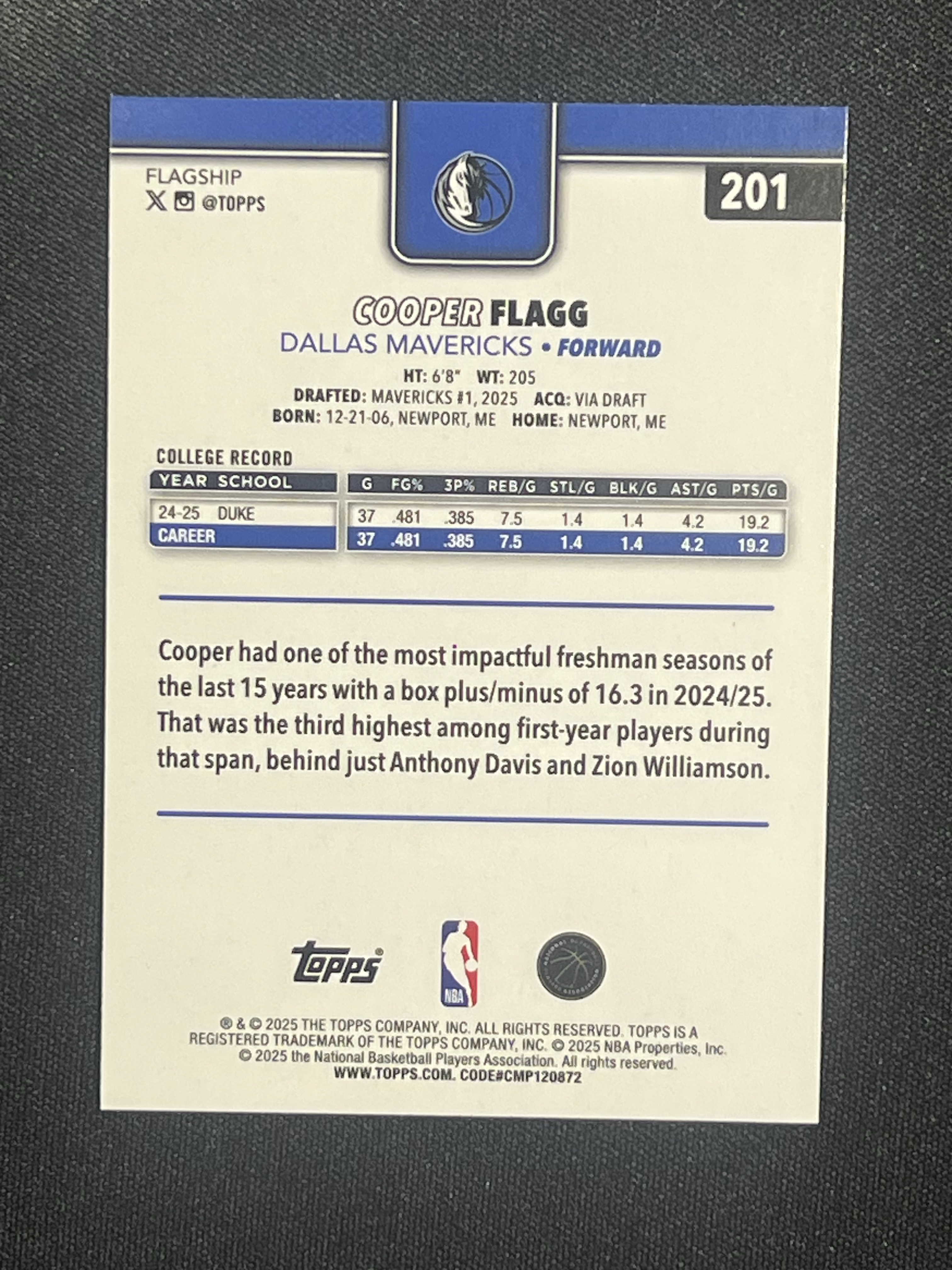 【卡卡星拍卖】2025 Topps Flagship Cooper Flagg RC 库珀 弗拉格 独行侠 状元 新秀 折射 银折  卡品如图 cory
