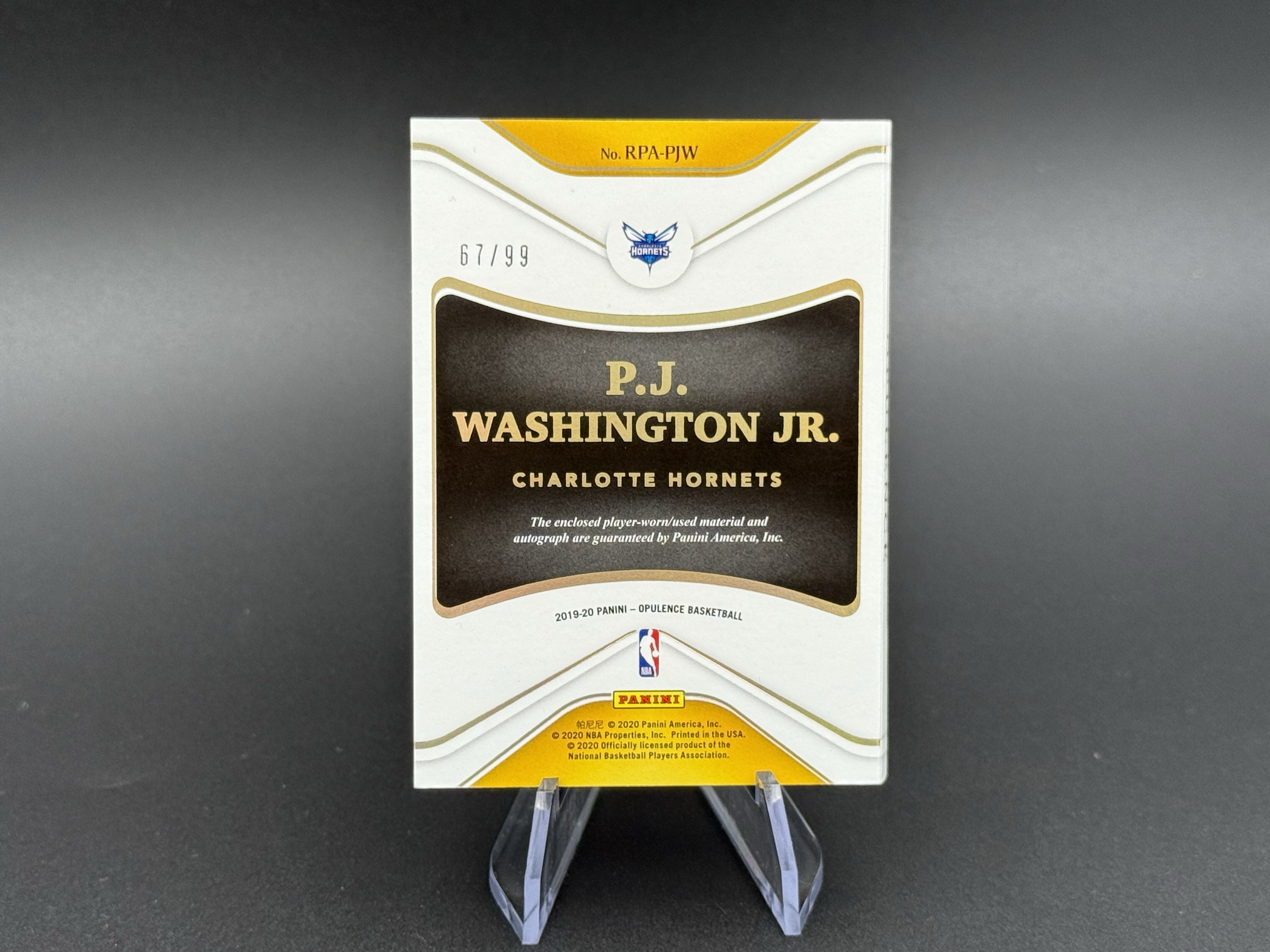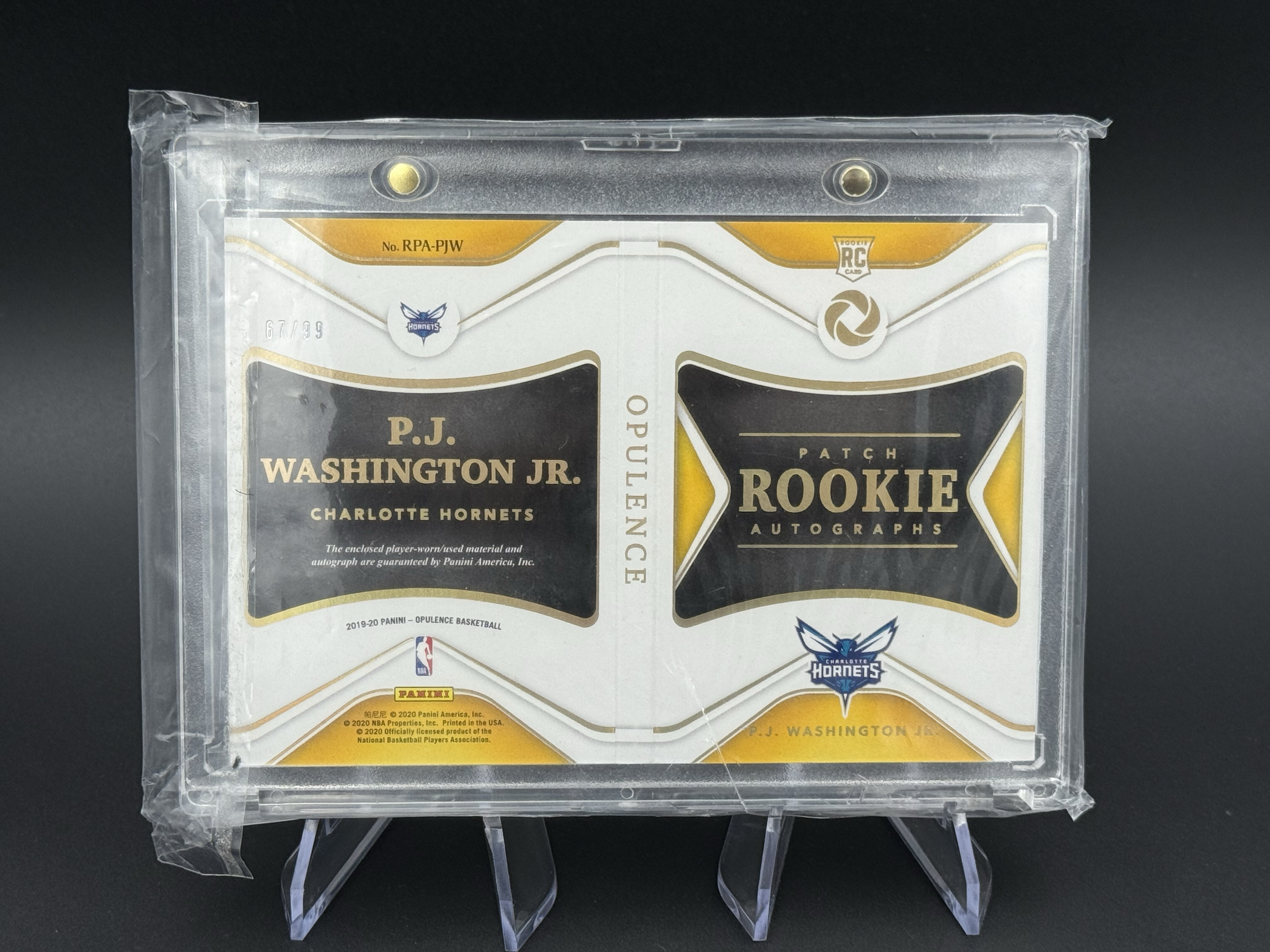 2020 Panini Opulence P.J. Washington RC PJ 华盛顿 金书 新秀 签字 99编 卡签 大窗球衣物料patch 暴力切割实物卡 RPA 小书 卡品瑕疵5 瑞慕包砖
