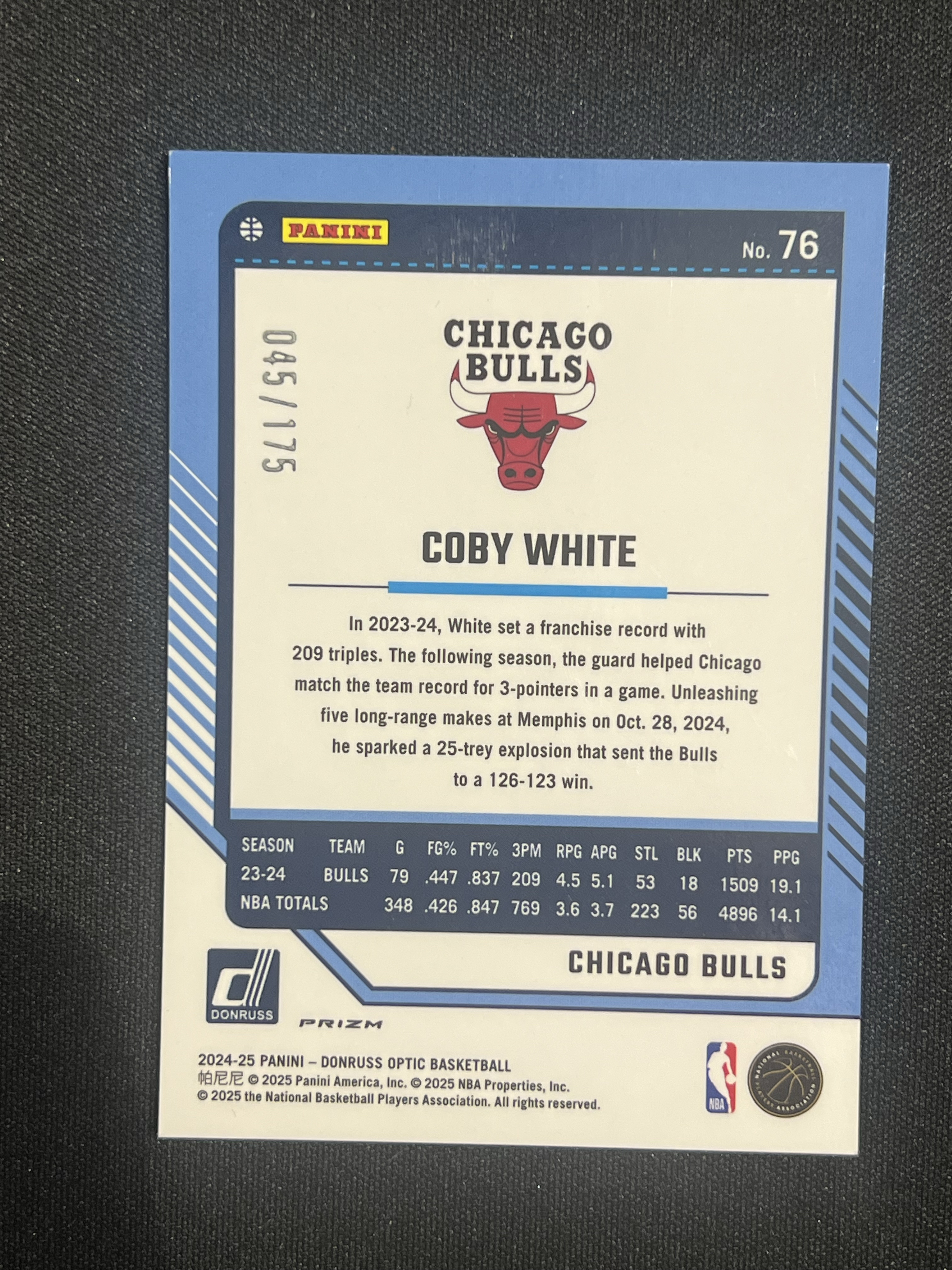 【卡卡星拍卖】2024-25 Panini Donruss Optic Coby White 杜蕾斯OP 公牛 科比 怀特 橙折 折射 175编 卡品如图 wst