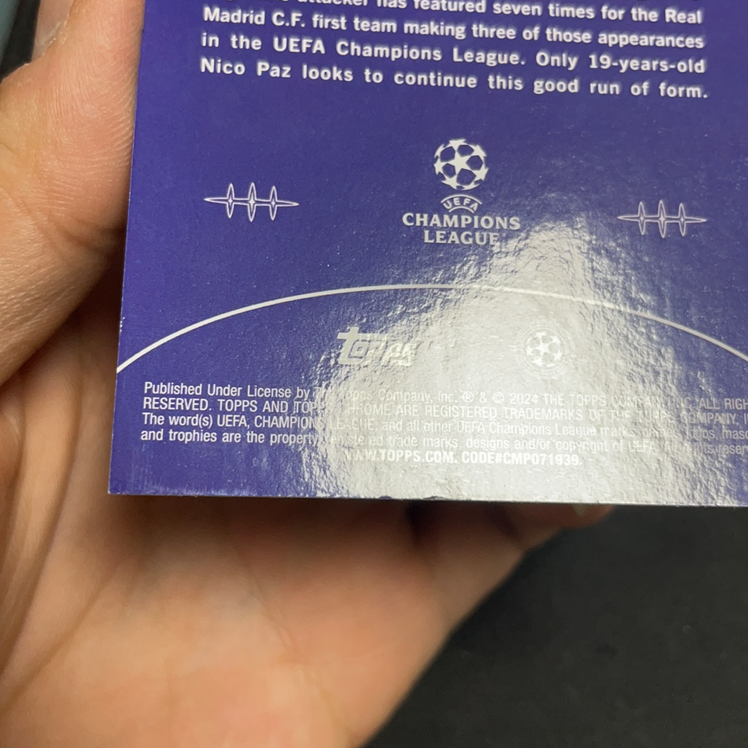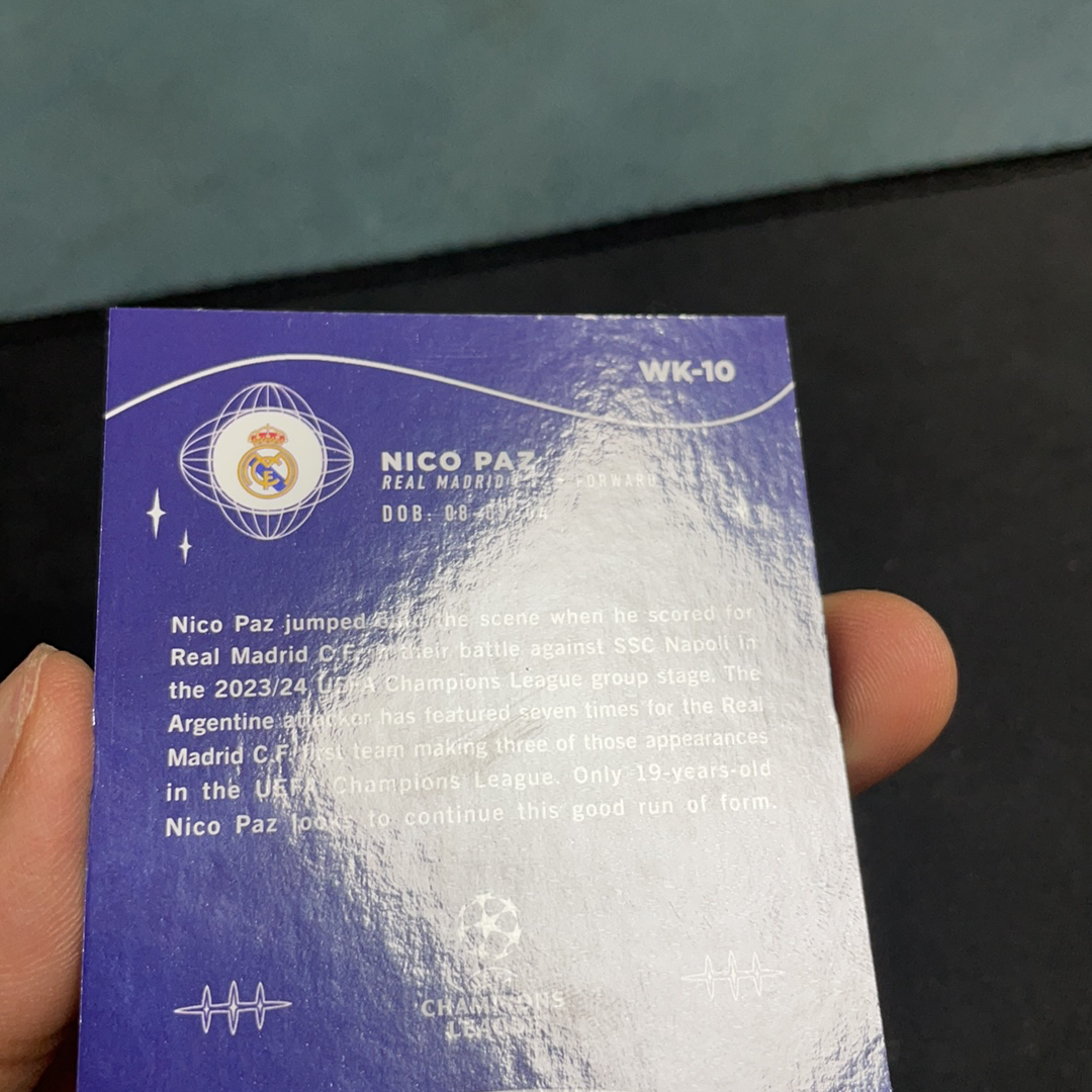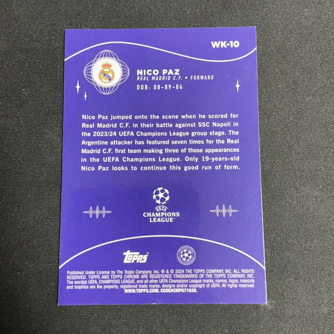 2024 Topps UEFA Champions League Nico Paz RC 欧冠 Chrome 皇马 尼科 帕兹 帕斯 大热新秀 蓝宝石 Wonderkids 神奇小妖特卡 碎冰 微瑕