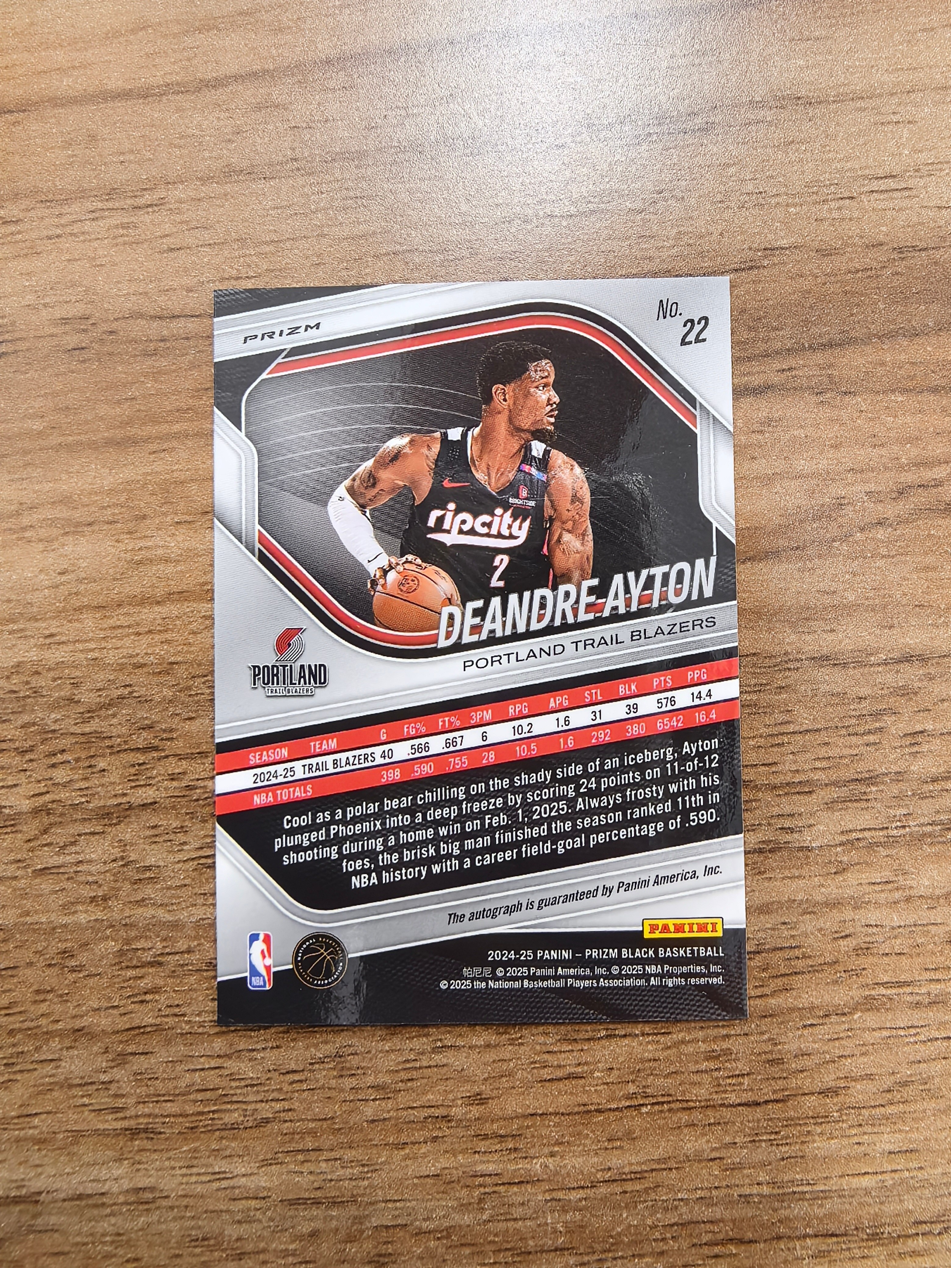 2024-25 Panini PRIZM BLACK Deandre Ayton 开拓者 德安德烈艾顿 签字 贴签 银折 折射 实卡精美 卡品如图 收藏必入 流浪
