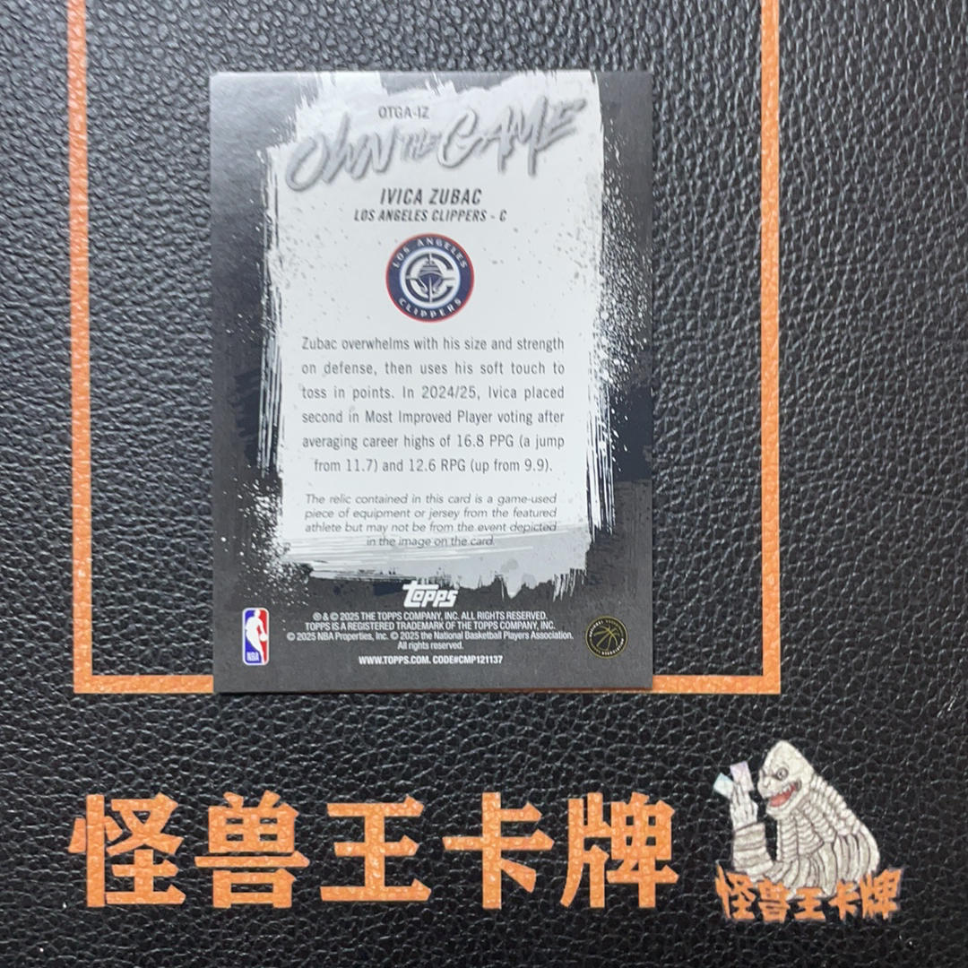 (怪兽拍卖) GSW-A13 2025 Topps Ivica Zubac 快船 伊维察 祖巴茨 球衣 物料 patch