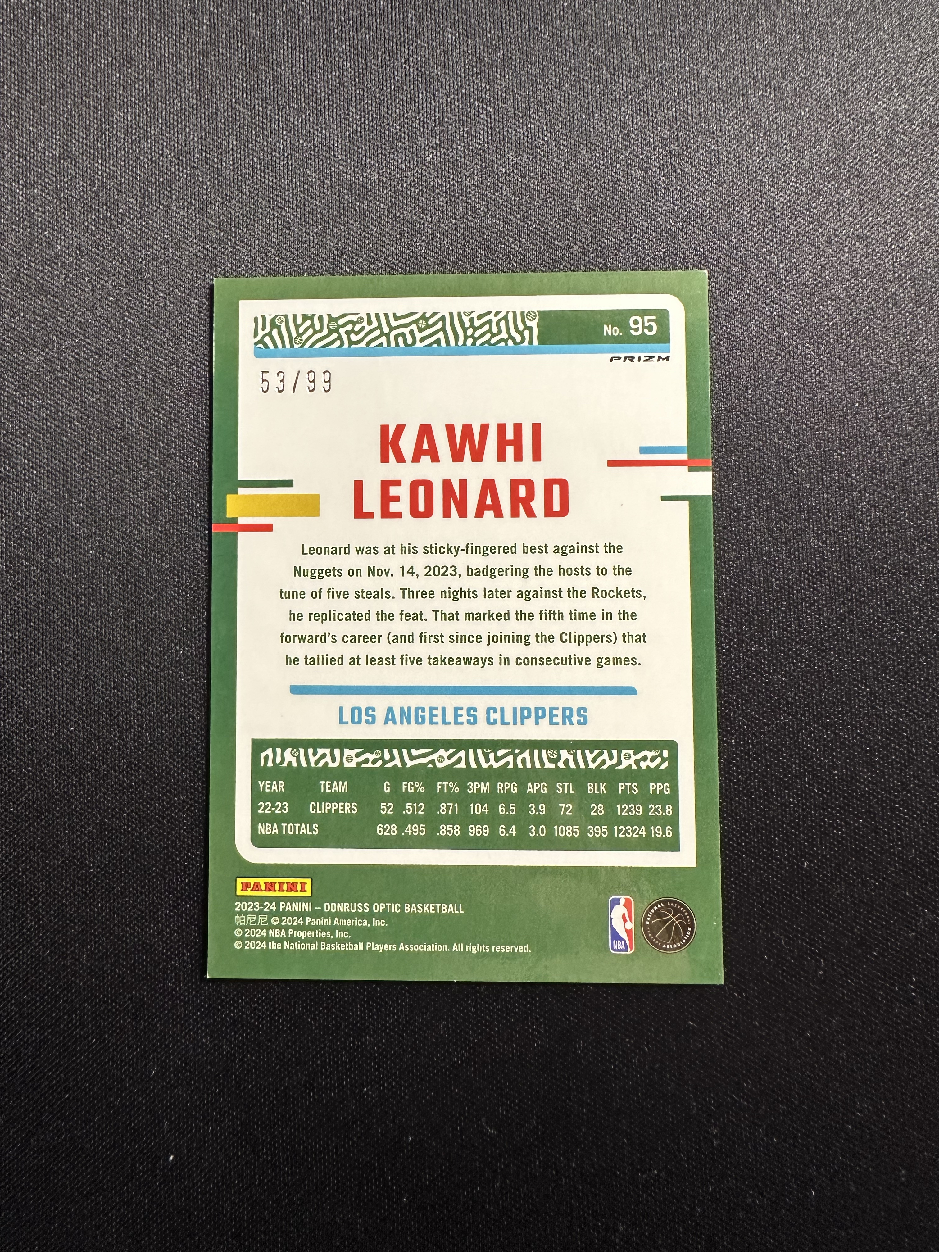 2023-24 Panini Donruss Kawhi Leonard 杜蕾斯OP 快船 科怀 伦纳德 卡红金圈圈折 折射 99编 卡品如图 【四小只】