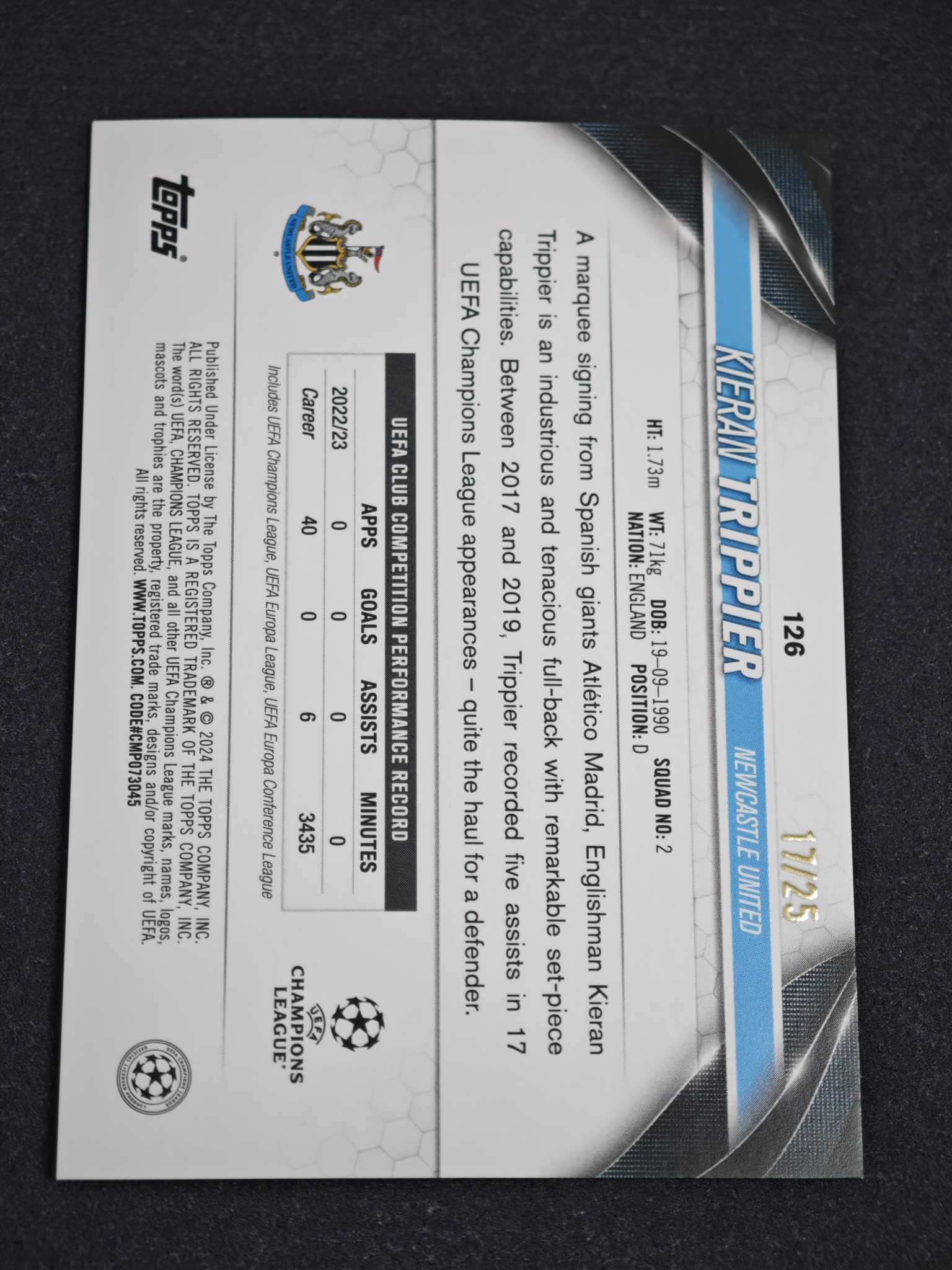 2023-24 Topps Chrome Kieran Trippier 【小灰机】欧冠 碧玉 纽卡斯尔 特里皮尔 橙折射 17/25编 超低编 收藏必备 瑕疵如图 老Q