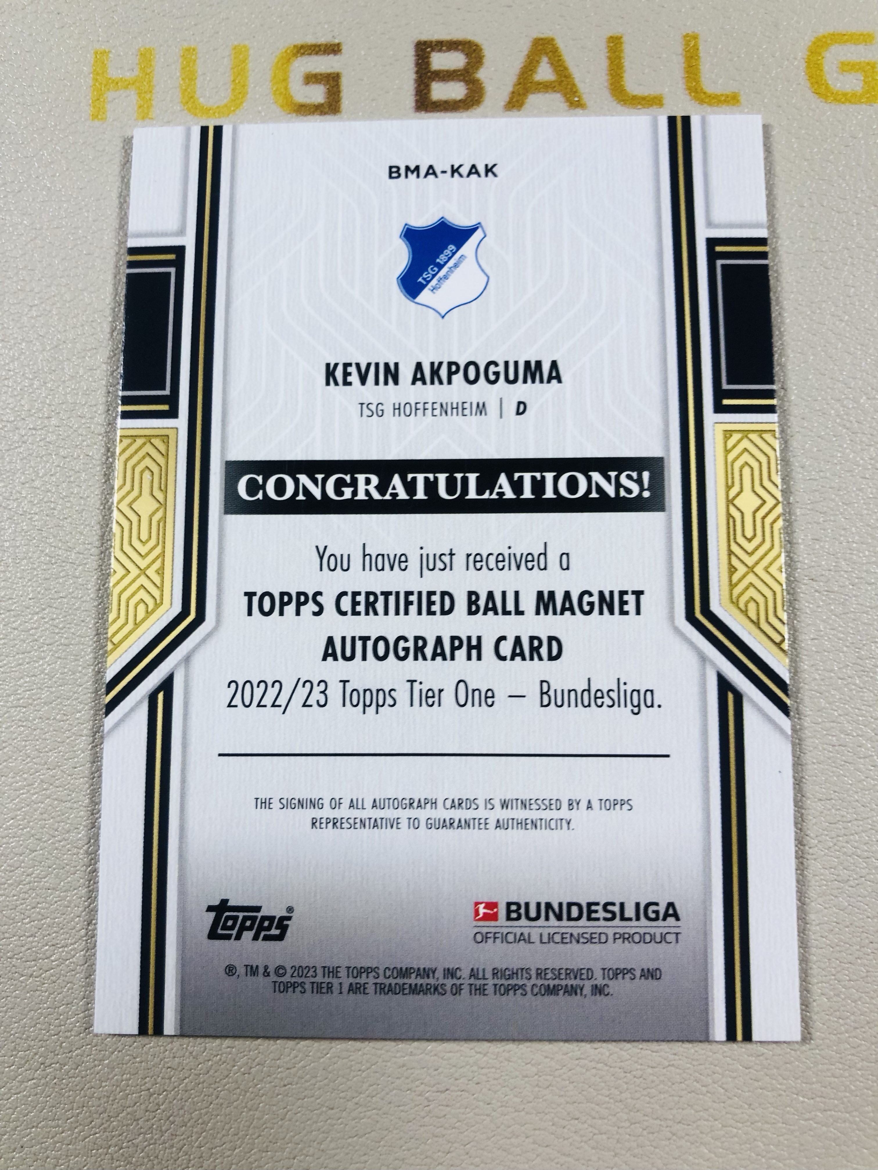 2023 Topps Tier one Akpoguma 德甲 Tier one 霍芬海姆 阿克波古马 15/50编 签字 单卡低于10元无卡夹介意勿拍 磁铁1110