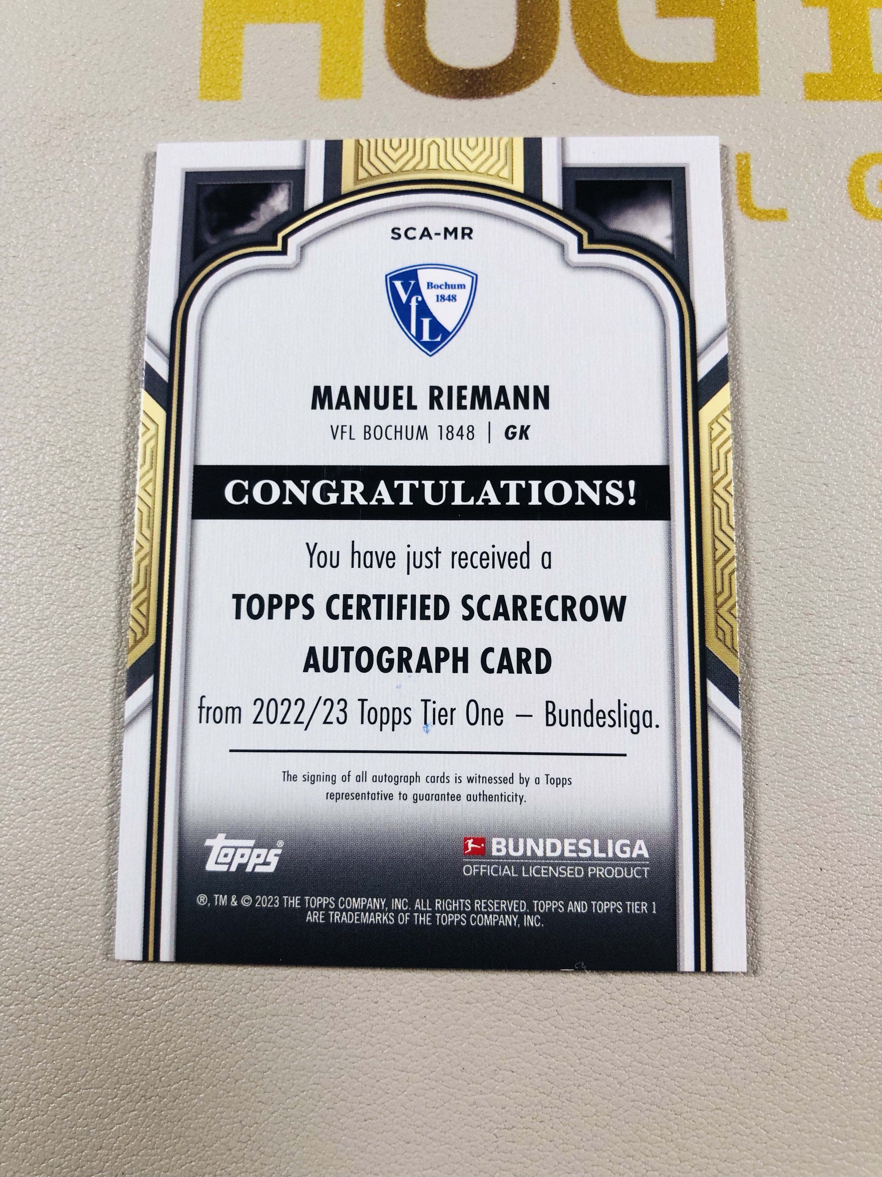2023 Topps Tier one Riemann 德甲 Tier one 波鸿 雷曼 50/50编 签字 单卡低于10元无卡夹介意勿拍 磁铁1110