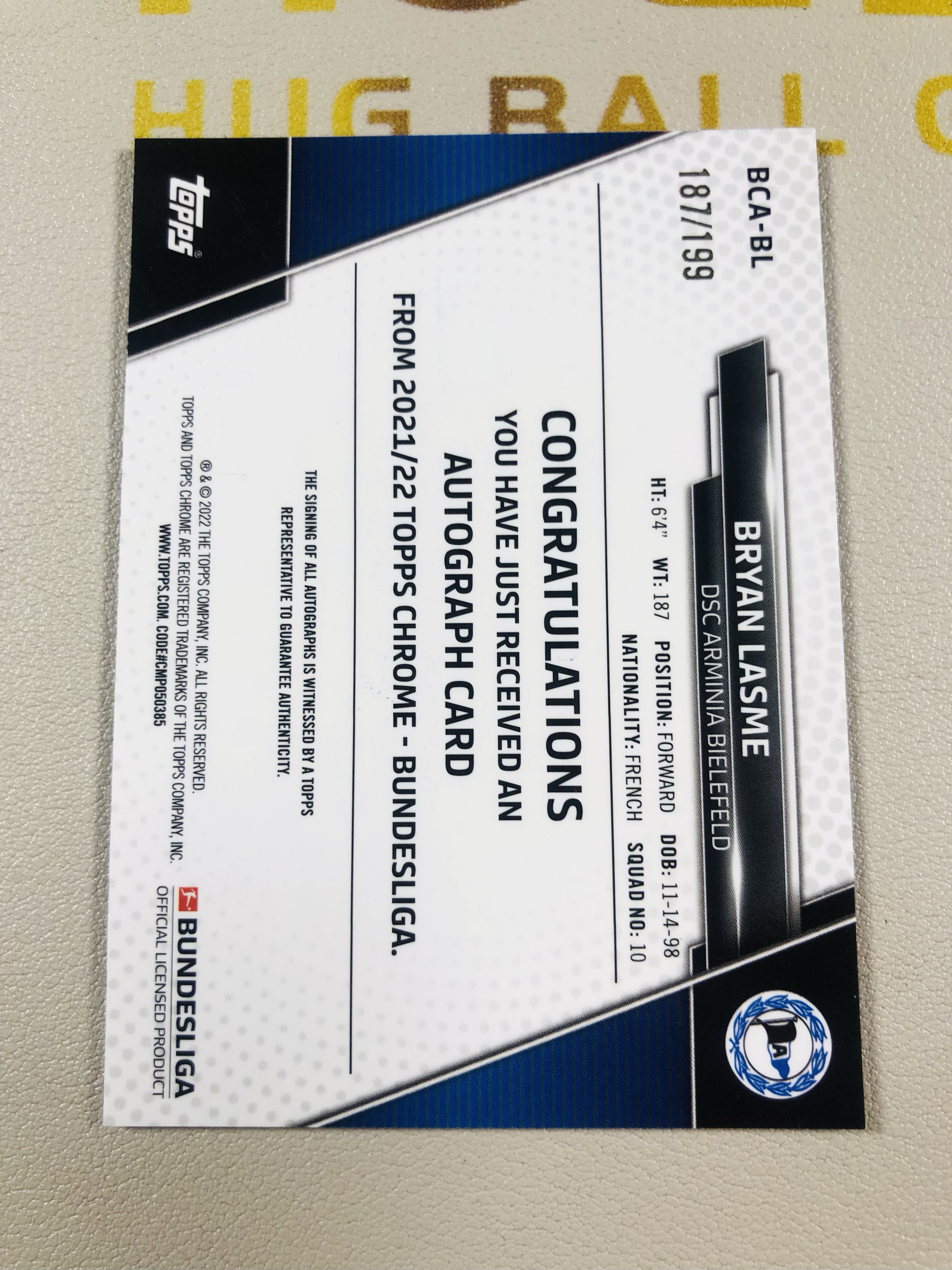 2022 Topps Chrome Bryan Lasme RC 德甲 Chrome 比勒菲尔德 新秀 拉斯梅 187/199编 签字 单卡低于10元无卡夹介意勿拍 磁铁1110