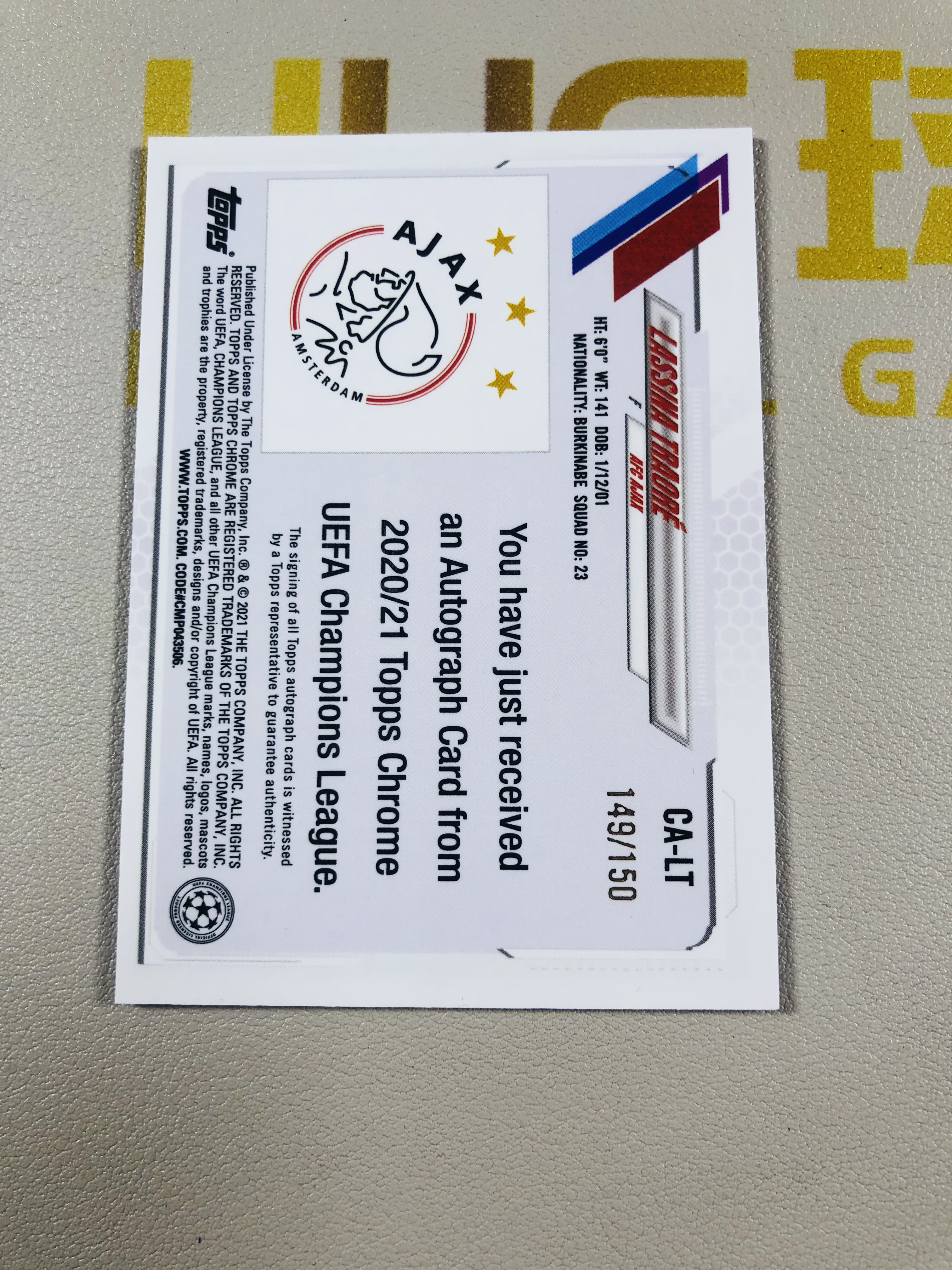 2021 Topps Chrome Lassina Traore RC 欧冠 Chrome 阿贾克斯 新秀 特拉奥雷 149/150编 签字 单卡低于10元无卡夹介意勿拍 磁铁1110