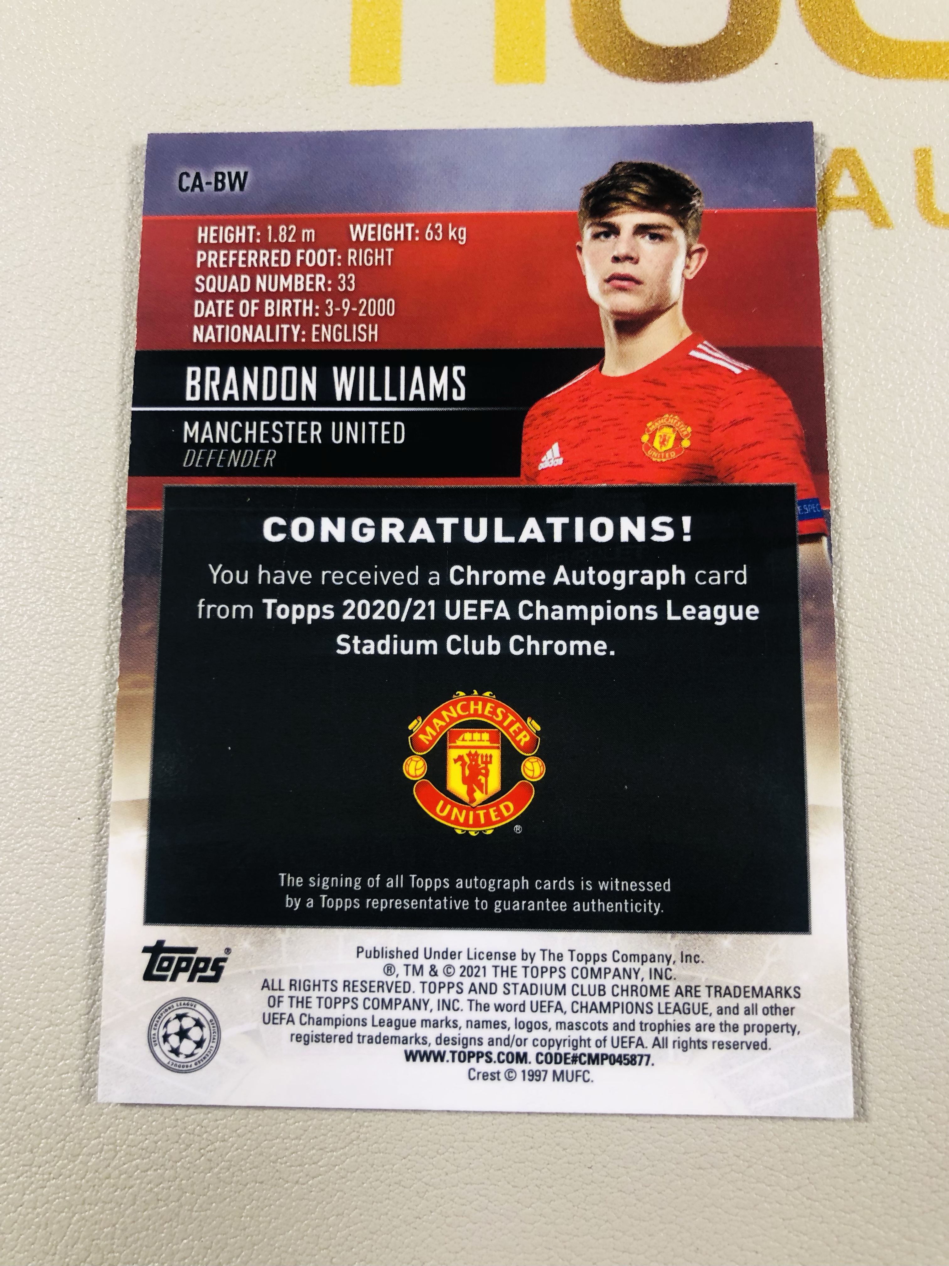 2021 Topps Chrome Brandon Williams RC 欧冠 Chrome 竞技场 曼联 新秀 威廉姆斯 银折 签字 单卡低于10元无卡夹介意勿拍 磁铁1110