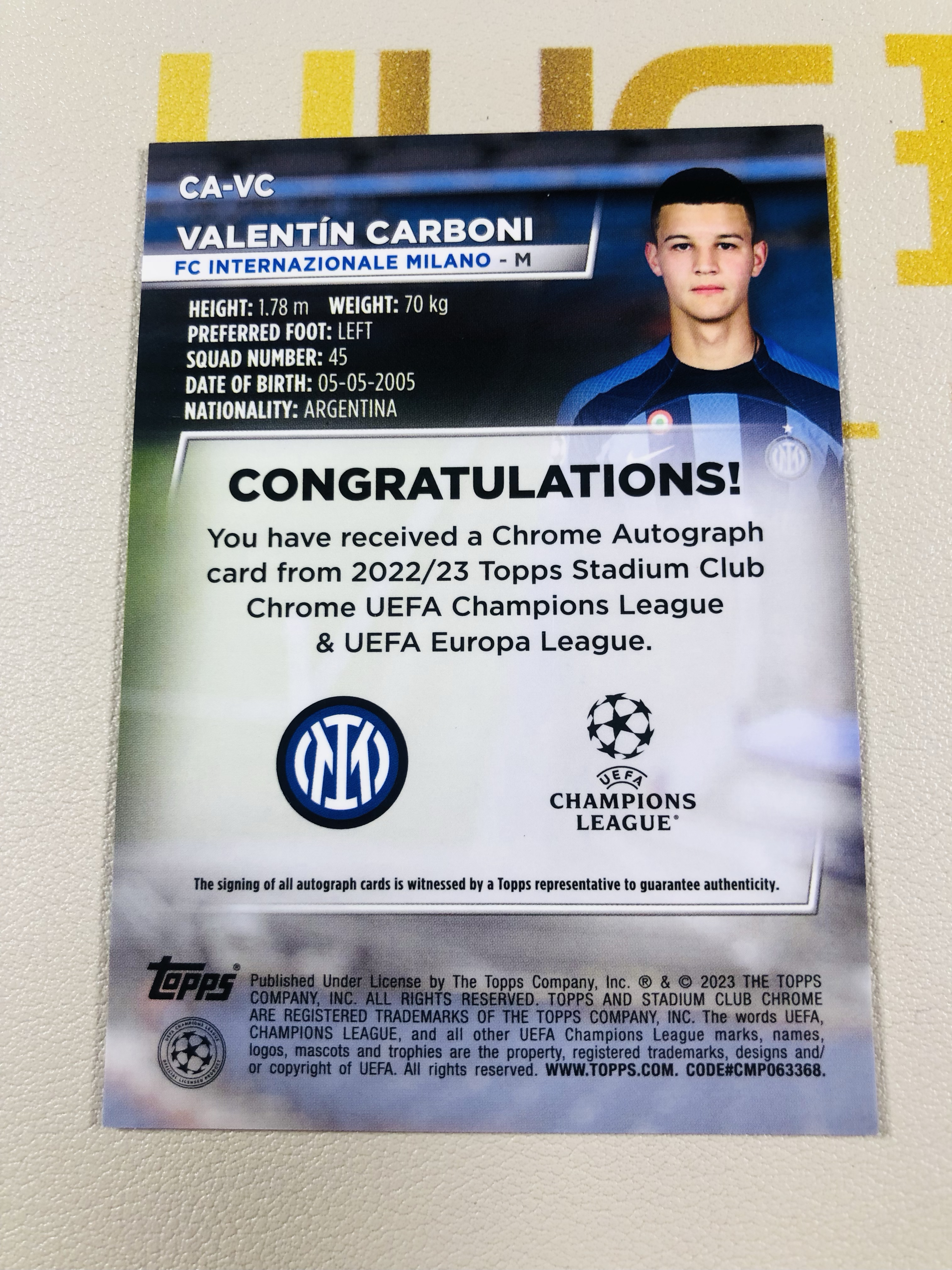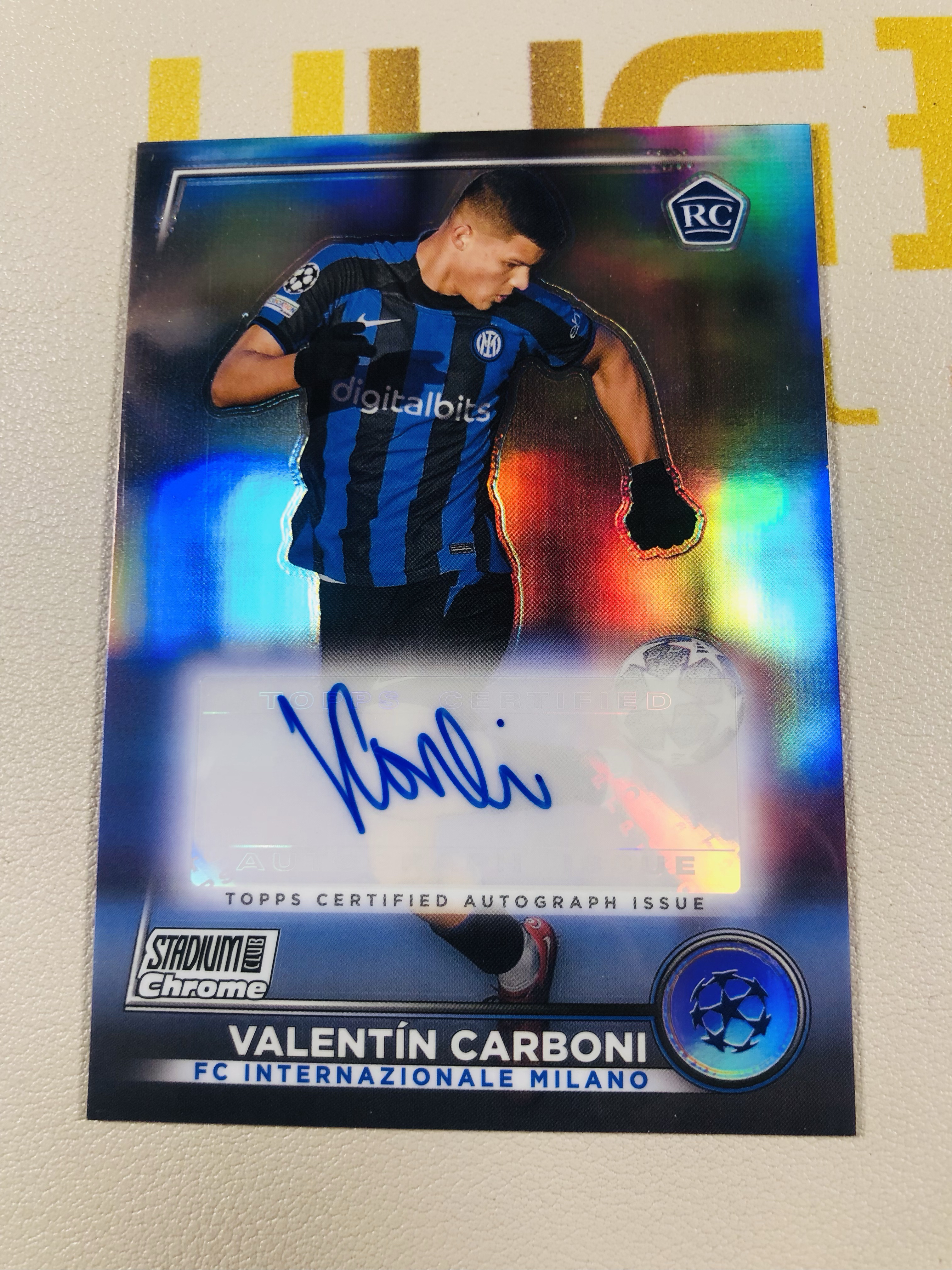 2023 Topps Chrome Valentín Carboni RC 欧冠 Chrome 竞技场 国际米兰 阿根廷 新秀 卡尔博尼 银折 签字 单卡低于10元无卡夹介意勿拍 磁铁1110