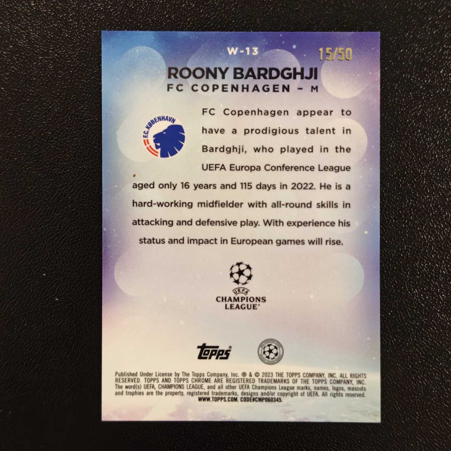 【HY拍卖】2022-23 Topps Chrome欧冠蓝宝石 哥本哈根 巴塞罗那 瑞典 Roony Bardghji巴尔德吉 RC新秀 Wonderkids特卡 橙碎冰折 折射 15/50编 不保品