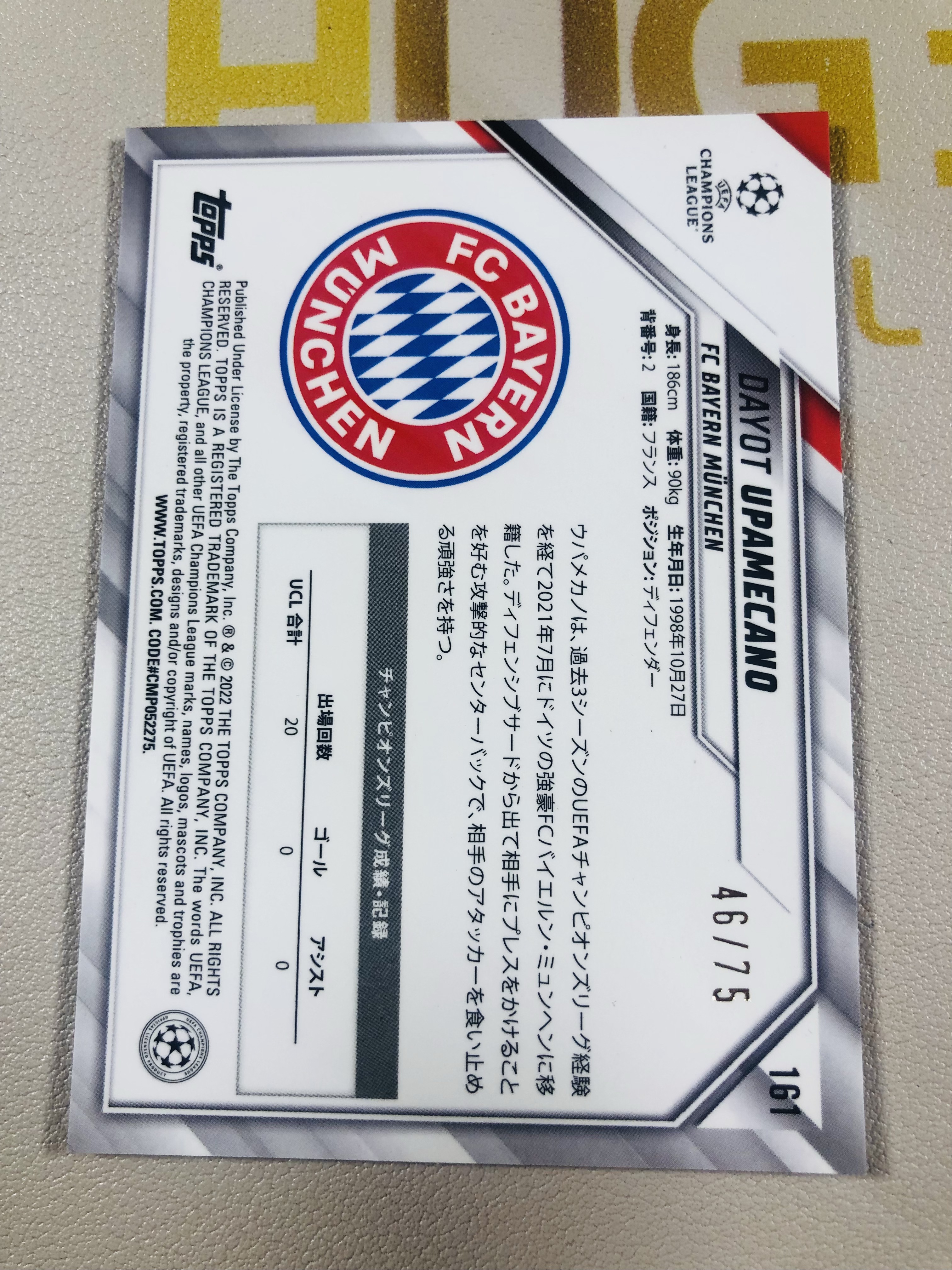 2022 Topps Chrome Dayotchanculle Upame 欧冠 Chrome 樱花 拜仁慕尼黑 乌帕梅卡诺 46/75编 单卡低于10元无卡夹介意勿拍 磁铁1110