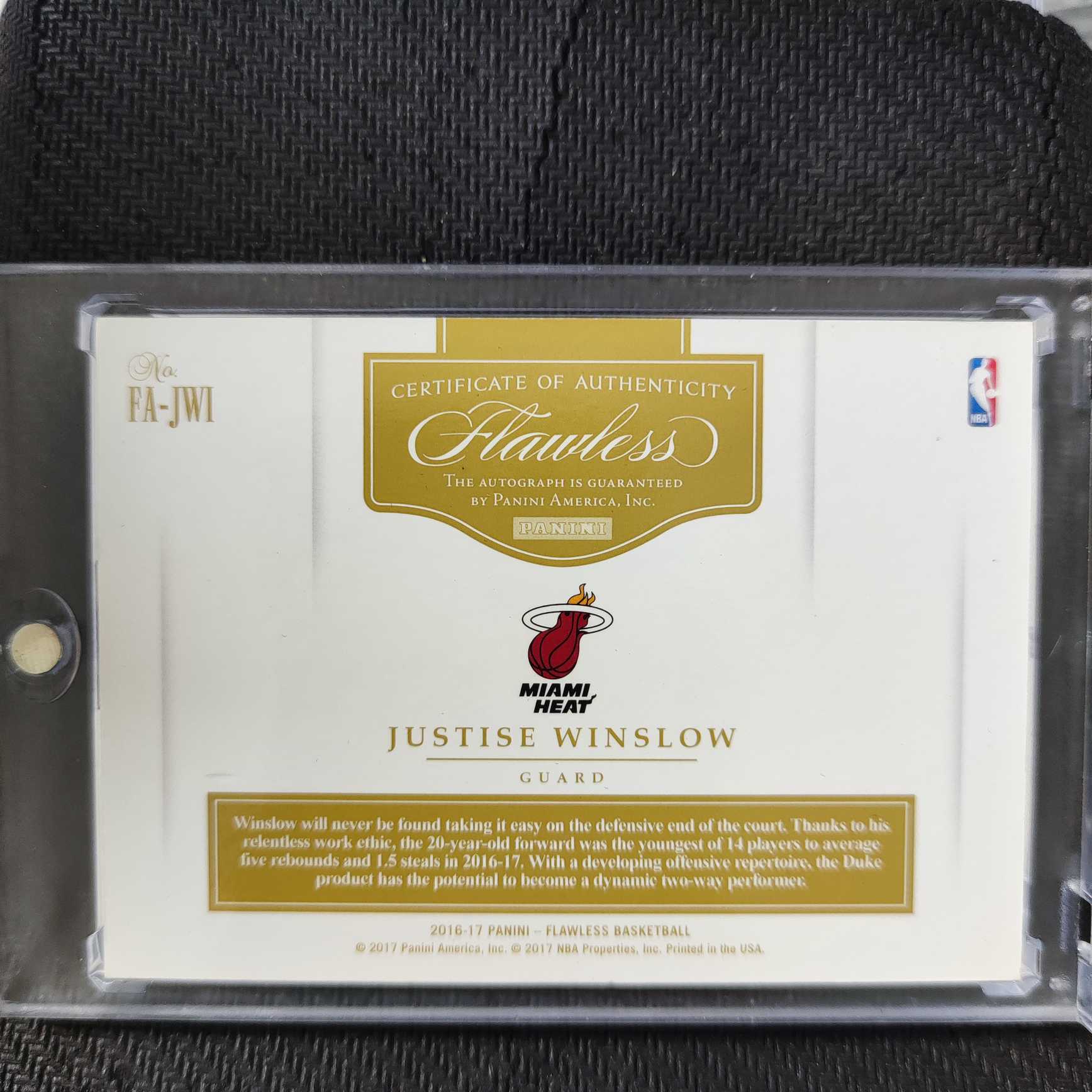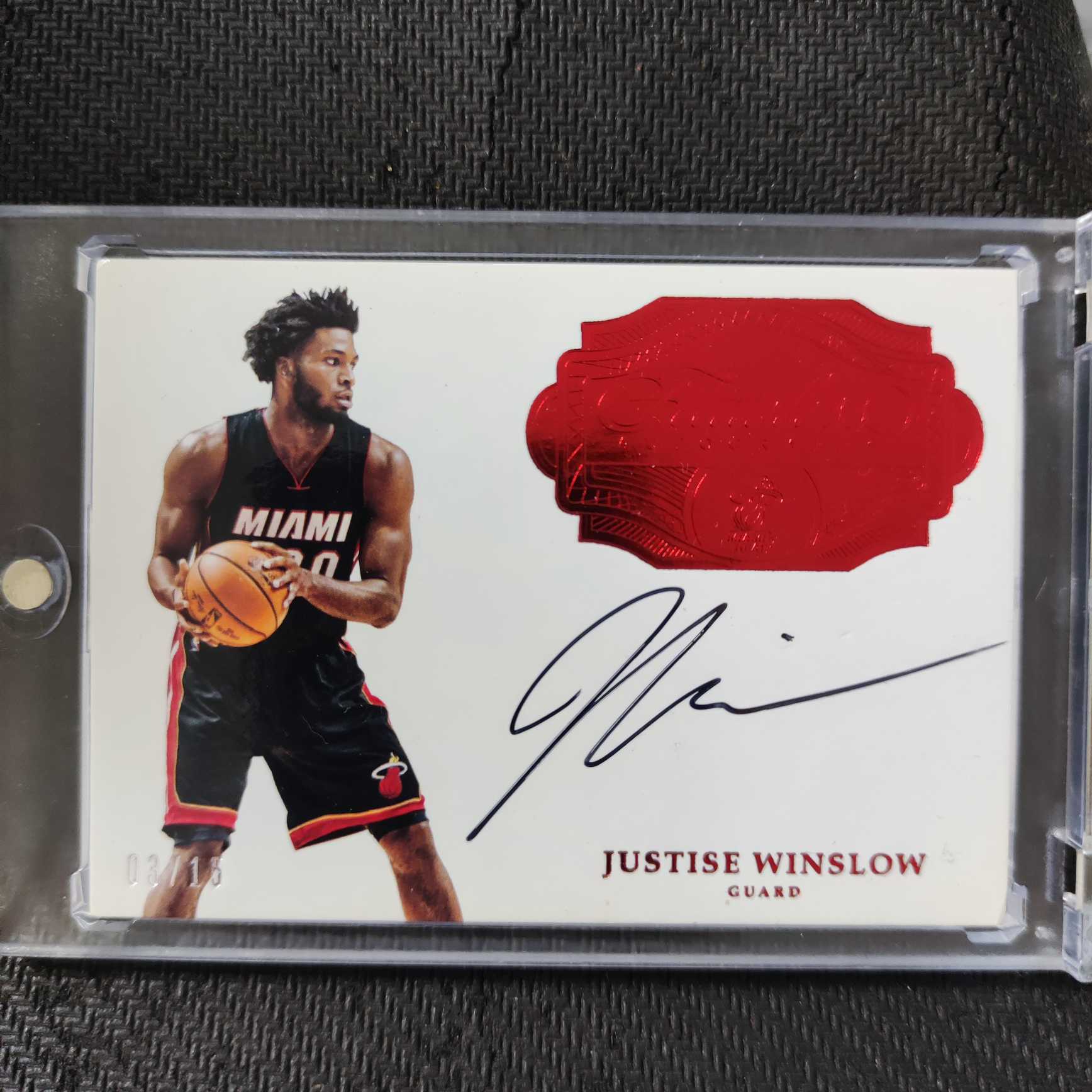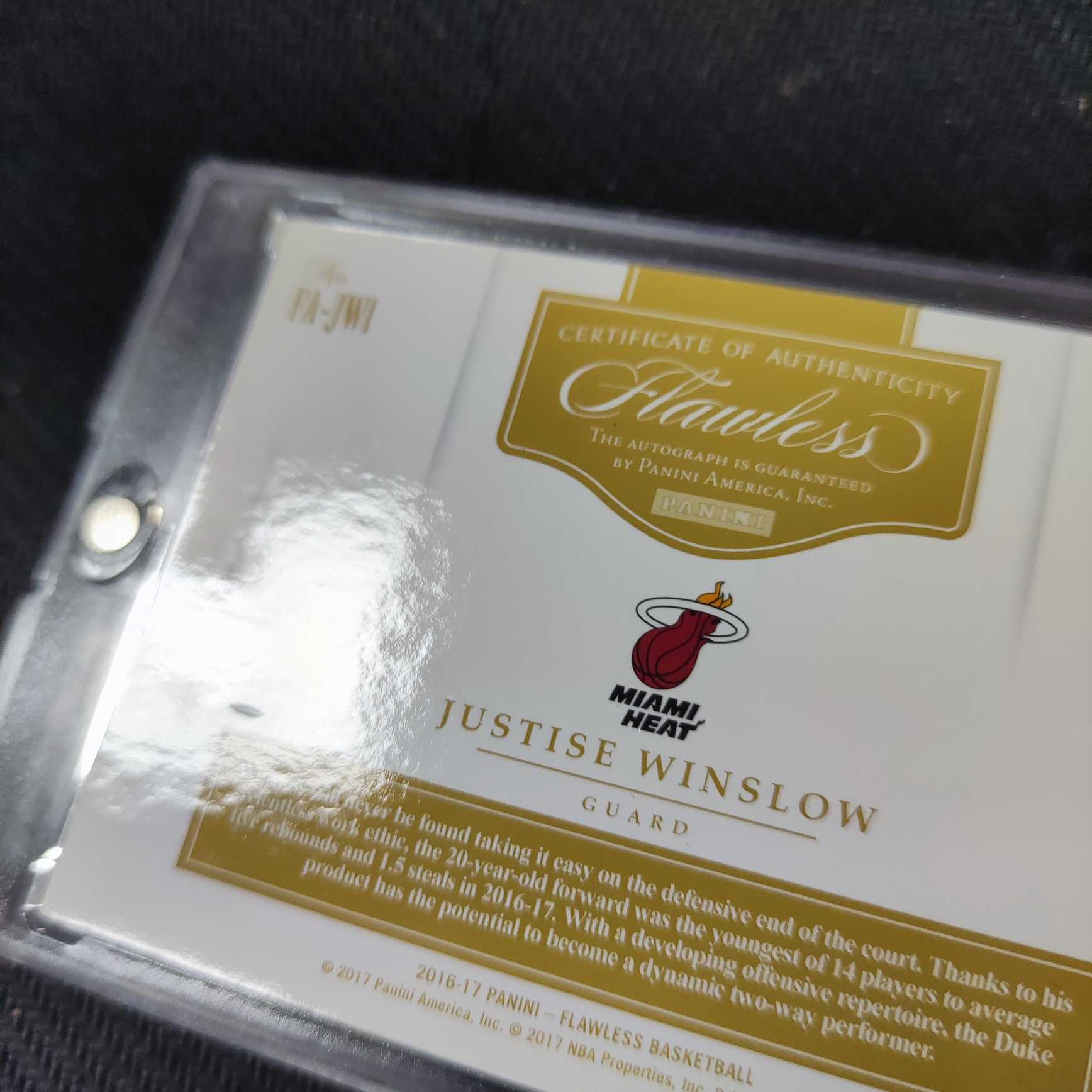 2016-17 Panini Flawless Justise Winslow 贾斯蒂斯 温斯洛 卡签 签字 3/15编 红色平行 热火队 手提箱系列 收藏必备 可累计 瑕疵图三,四