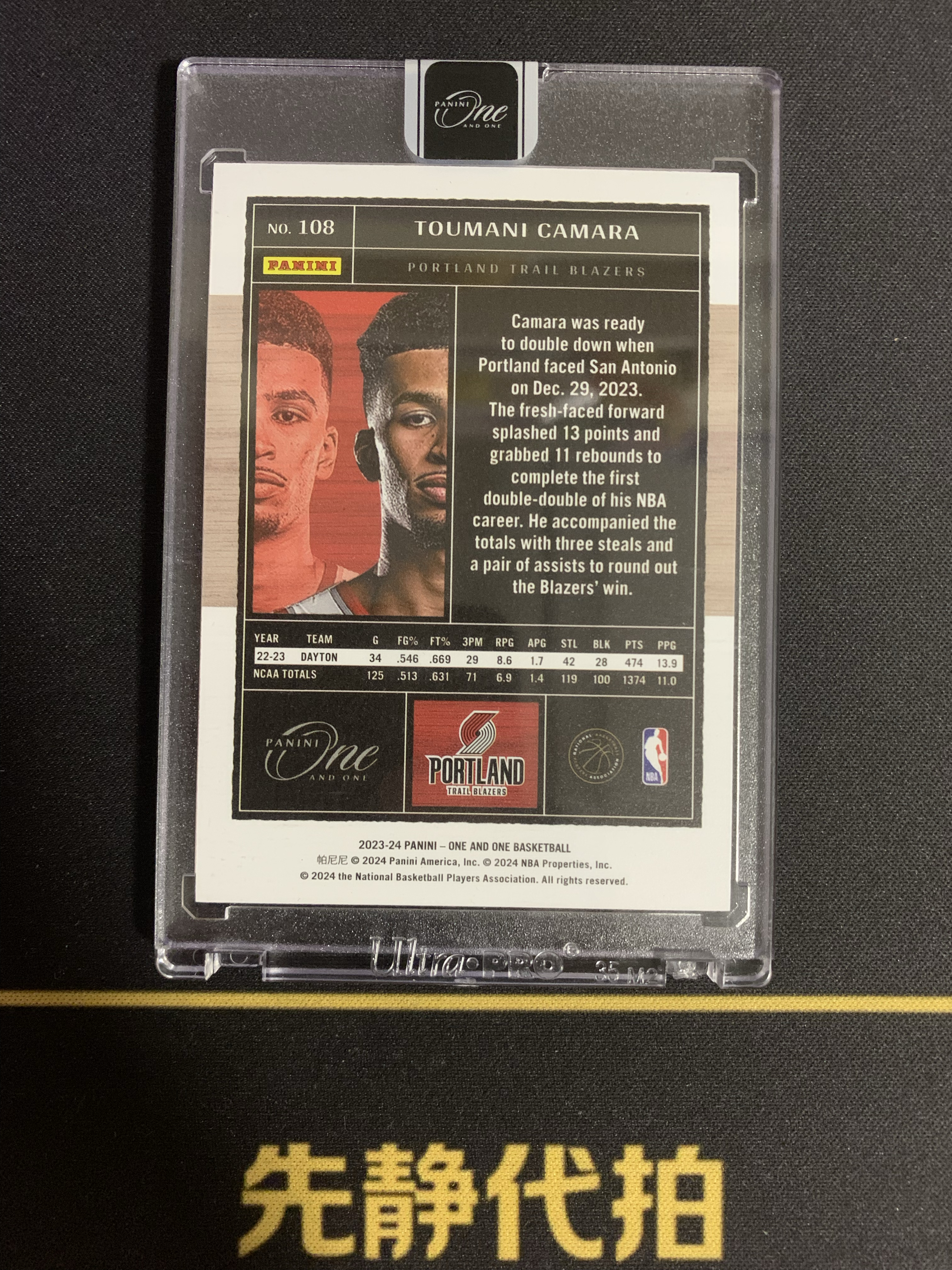 2023-24 Panini One and One Toumani Camara RC 【先静代拍】one 开拓者 新秀 图马尼 卡马拉 99编 银折 折射 原封砖 专收必备(唐总)