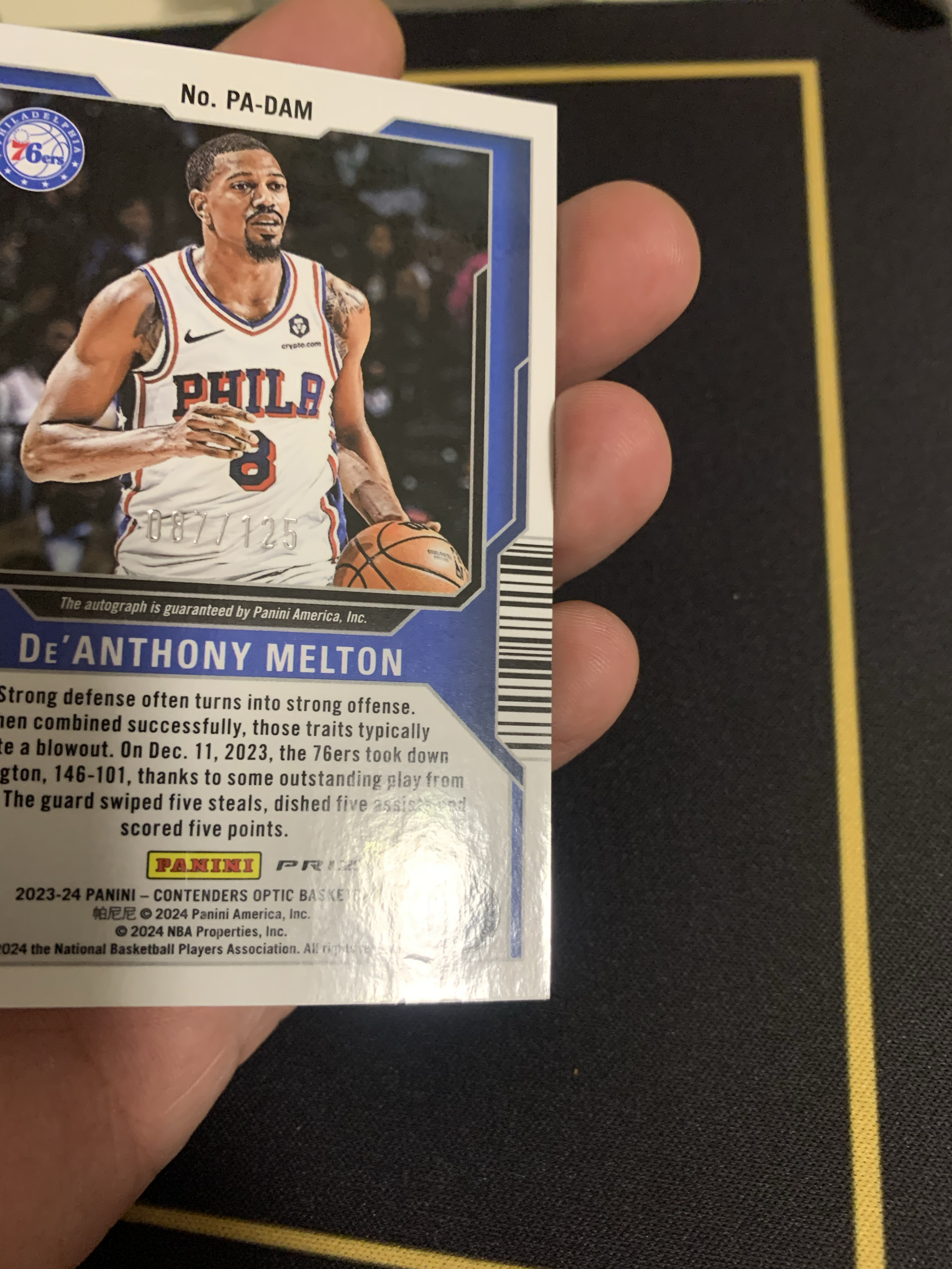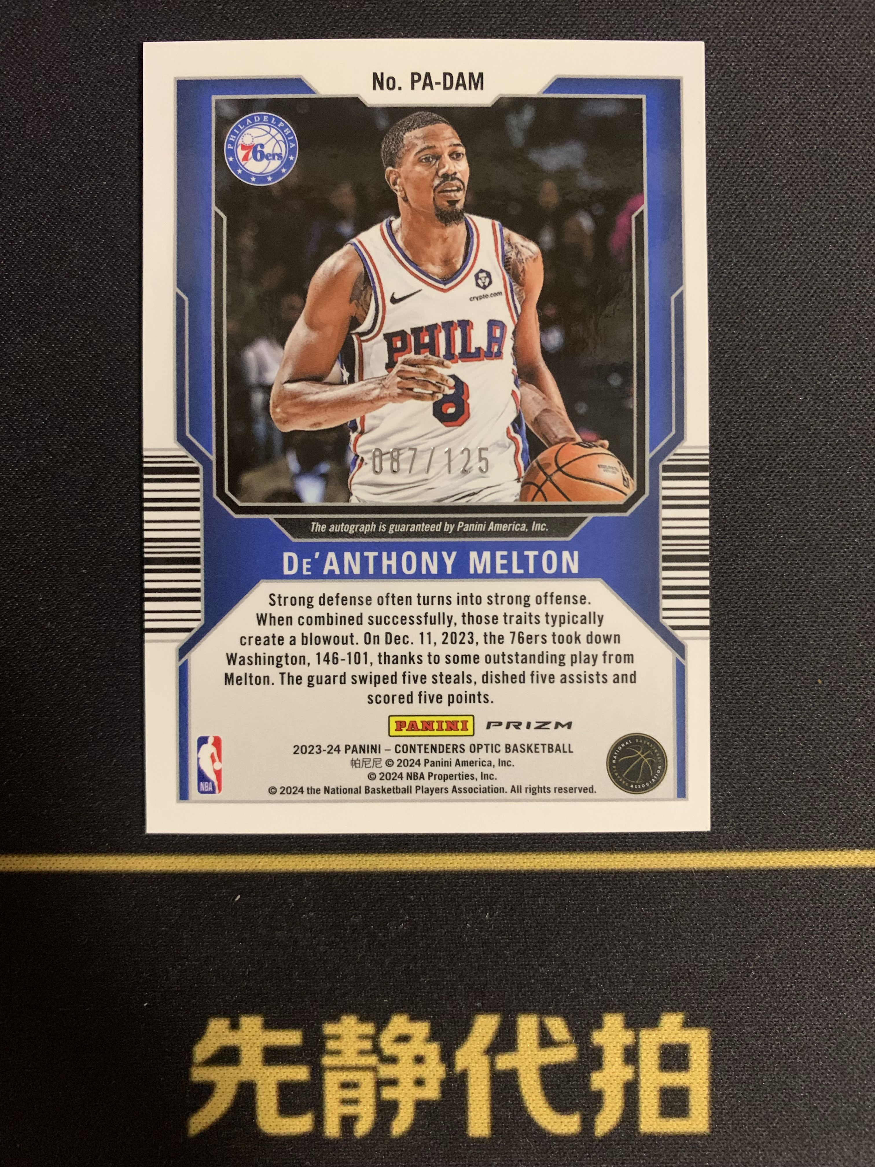 2023-24 Panini Contenders Optic De'Anthony Melton 【先静代拍】球票op 76人 德安东尼 梅尔顿 125编 银折 签字 贴签 卡品瑕疵如图(唐总)