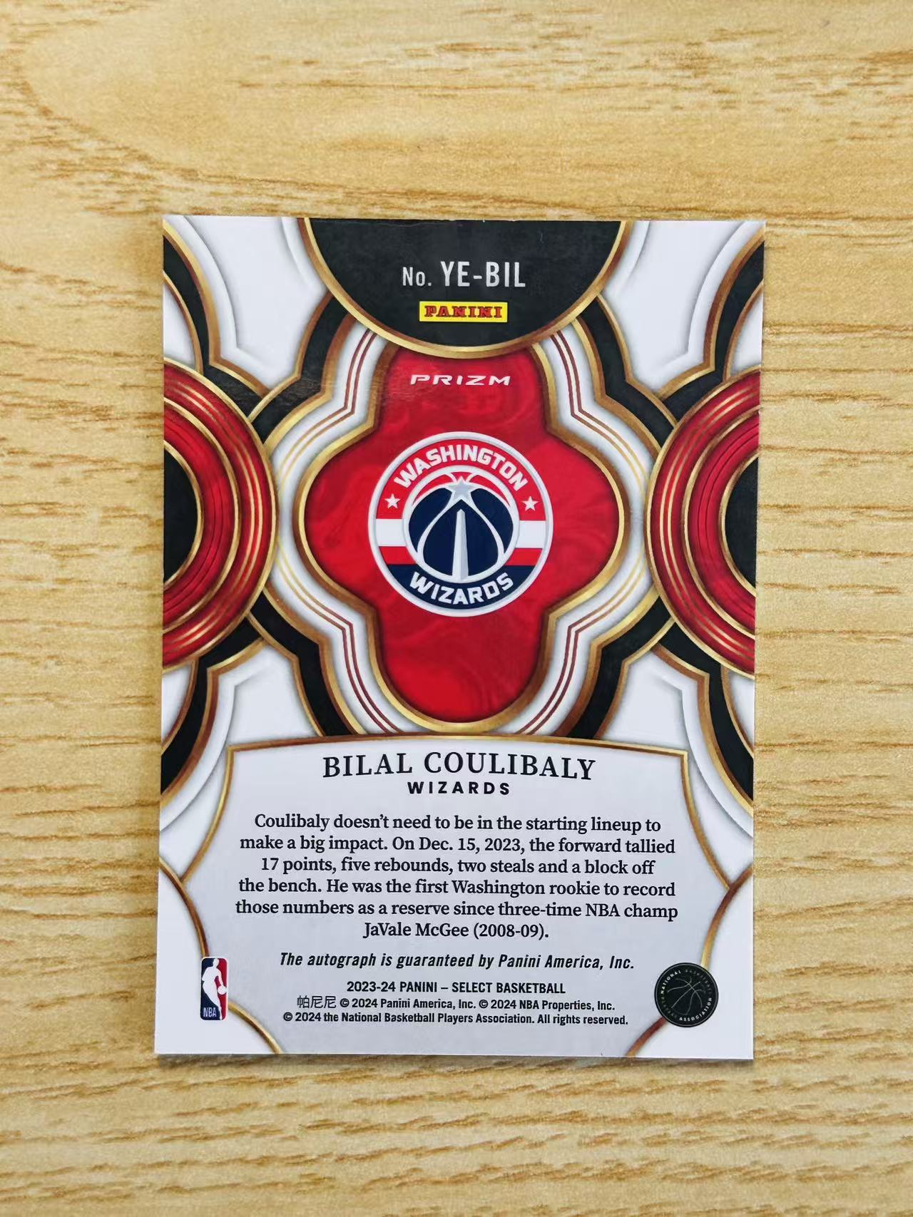 2023-24 Panini Select Bilal Coulibaly 嘿嘿代卖 SE 比拉尔 库利巴利 新秀 RC 签字 绿碎冰 奇才 法国潜力新星 收藏必备