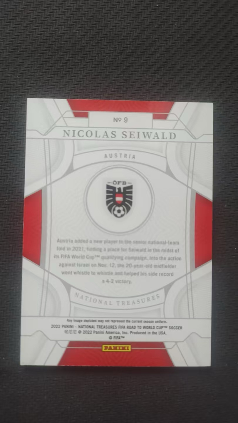 2022 Panini National Treasures Nicolas Seiwald 尼古拉斯 塞瓦尔德 奥地利 莱比锡红牛 世界杯国宝 RC 新秀 99编 凌风