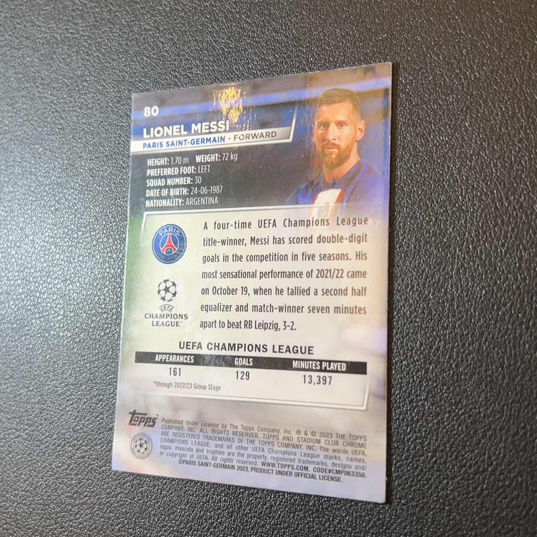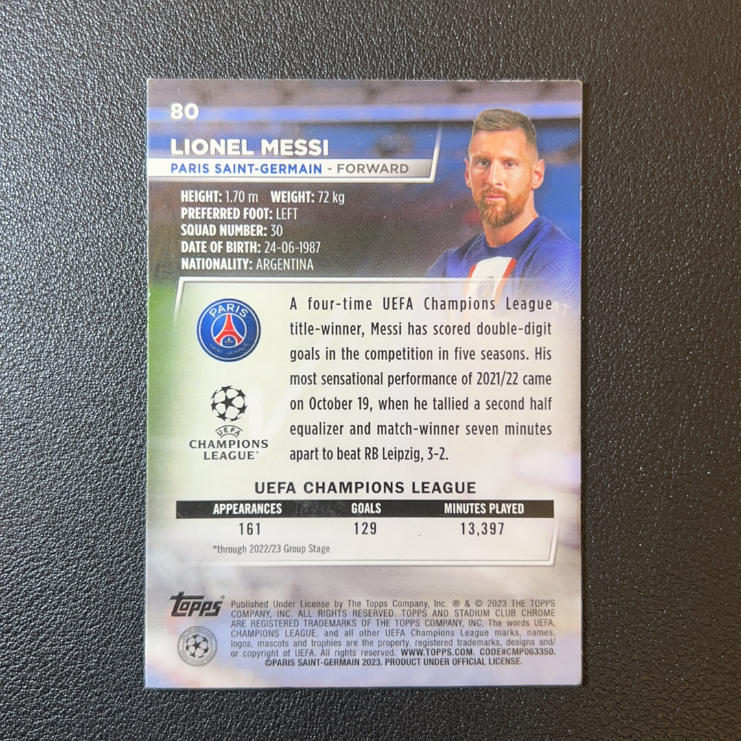 2023 Topps Stadium Club Chrome Lionel Messi 欧冠 竞技场 大巴黎 阿根廷 巴萨 梅西 球王 马黛茶选图 收藏必备 微划-SY5343