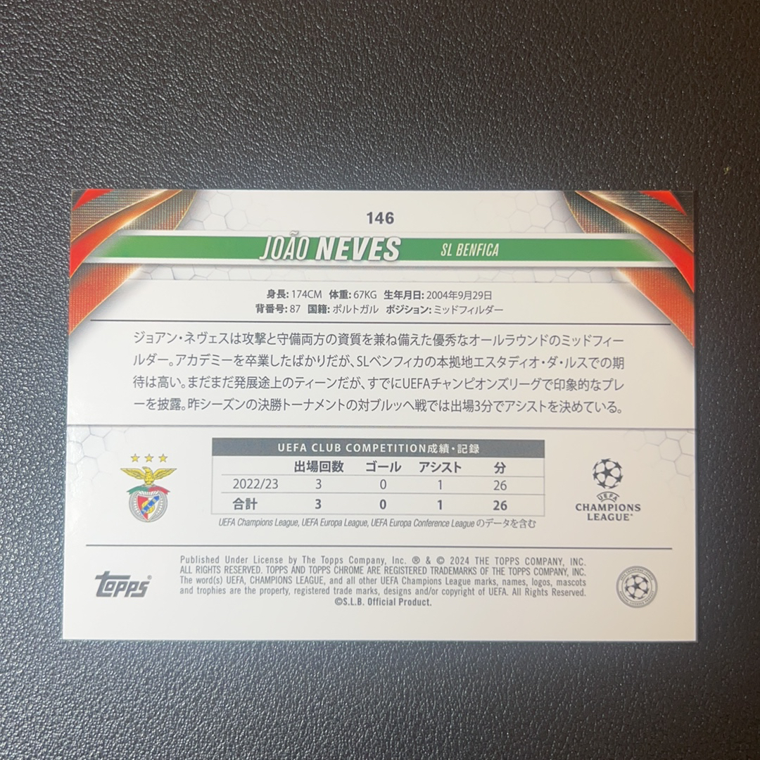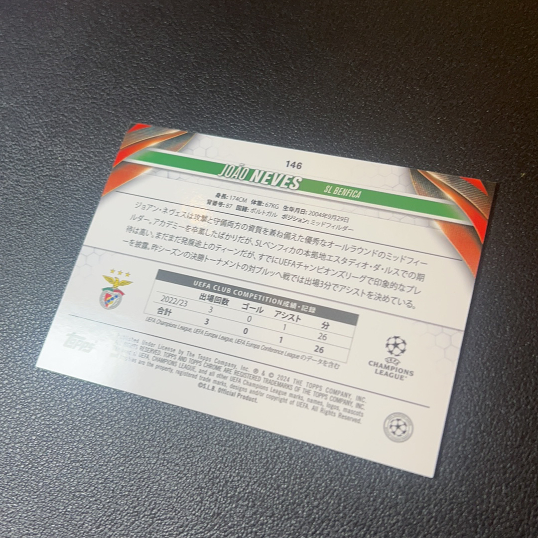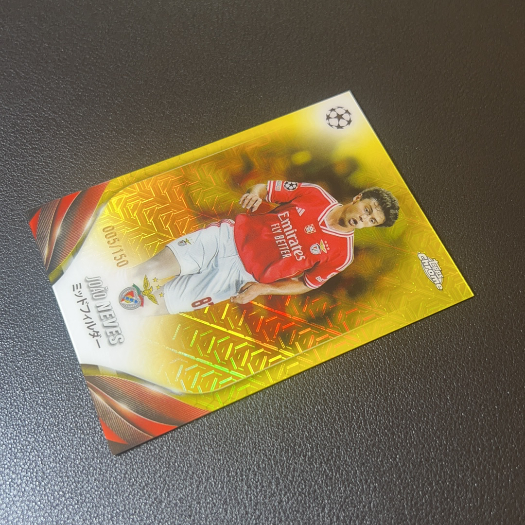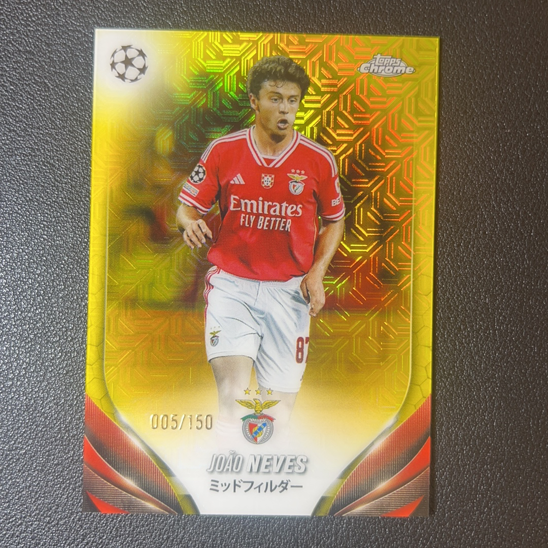 2024 Topps Chrome JOAO NEVES 欧冠TC 日版 樱花 本菲卡 葡萄牙 若昂 内维斯 150编 金Mojo折 折射 收藏必备 轻印-SY5343