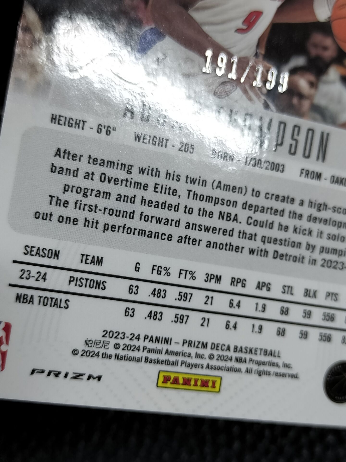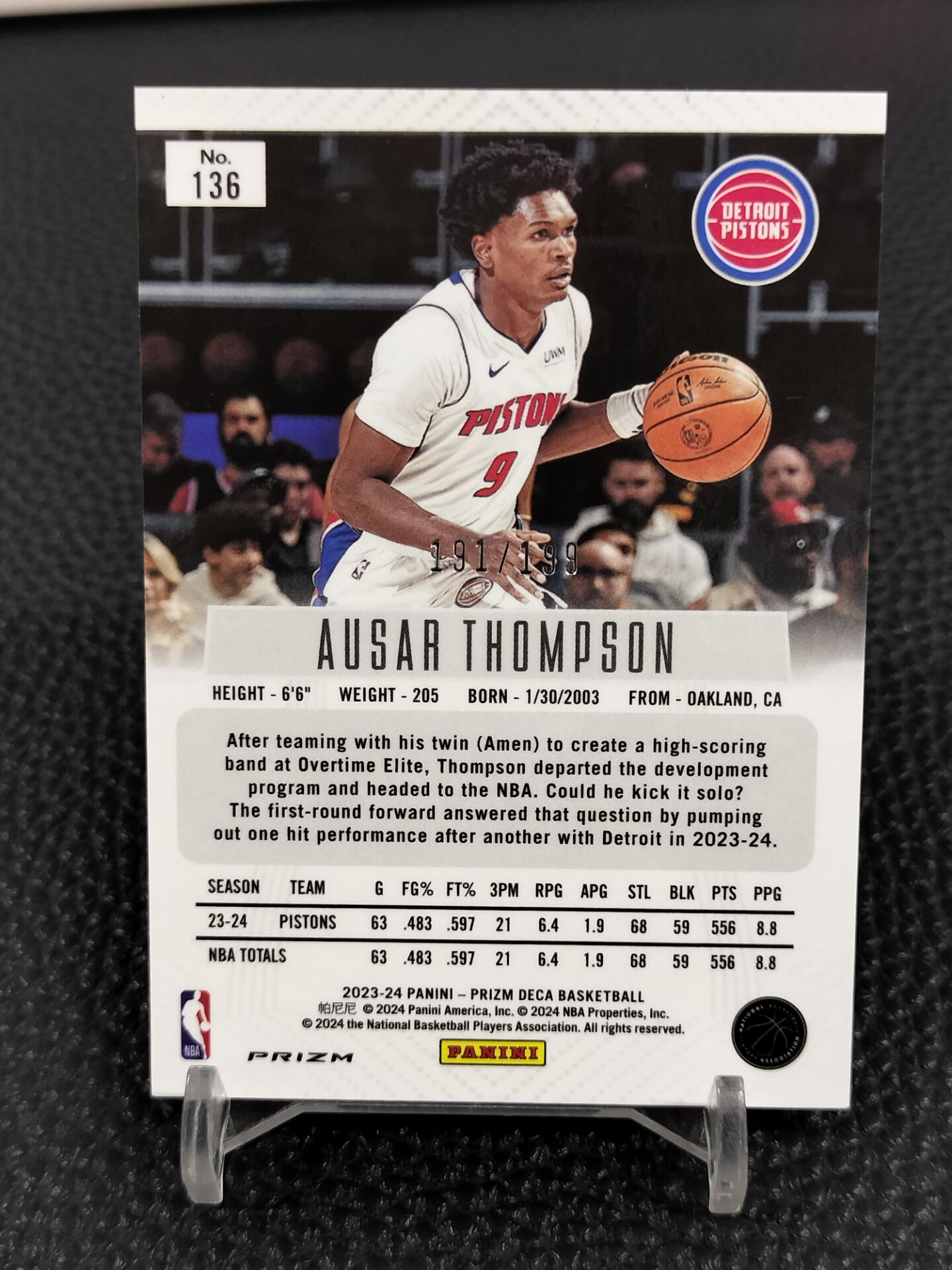 【浩行拍卖 截标预付82%】2023-24 panini prizm deca ausar thompson 元年复刻 活塞 奥萨尔 汤普森 新秀 rc 红折 折射 191/199编 专收必备 瑕疵看图「解夕」1111h01飛